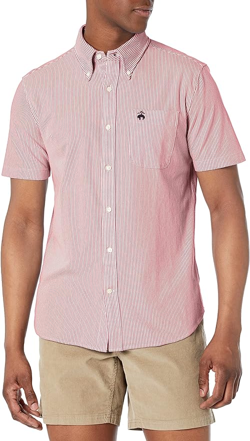 Brooks Brothers Men's Knit Short Sleeve Button Down Stripe Sport Shirt