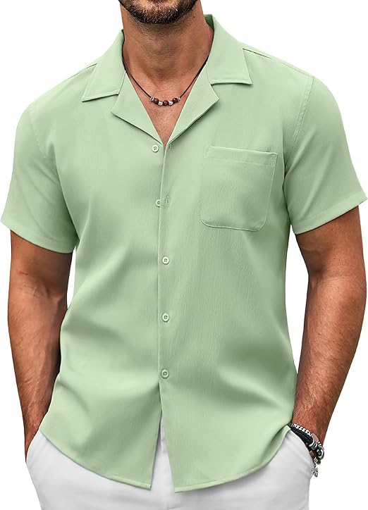 COOFANDY Men's Casual Button Down Shirts Short Sleeve Summer Beach Shirt Fashion Textured Shirts with Pocket
