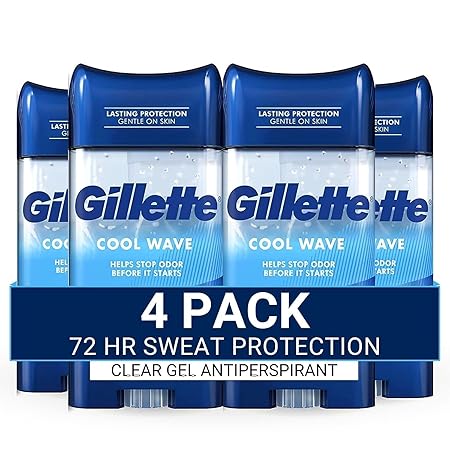 Gillette Antiperspirant and Deodorant for Men, 72-Hour Sweat Protection, Clear Gel, Cool Wave Scent, 3.8 oz (Pack of 4)