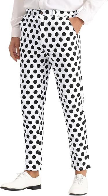 Lars Amadeus Classic Pants for Men's Polka Dots Pattern Flat Front Polka Dots Pants