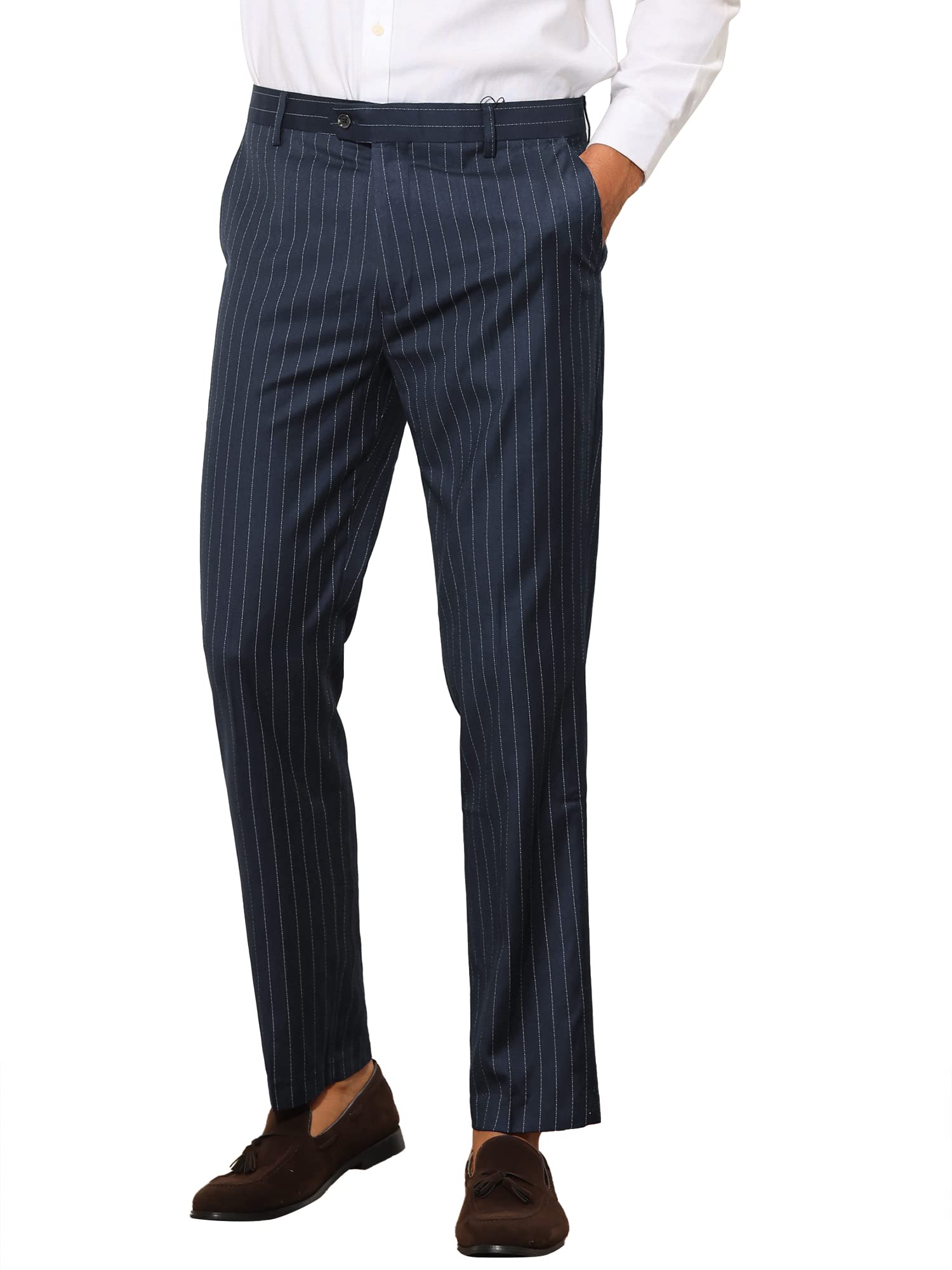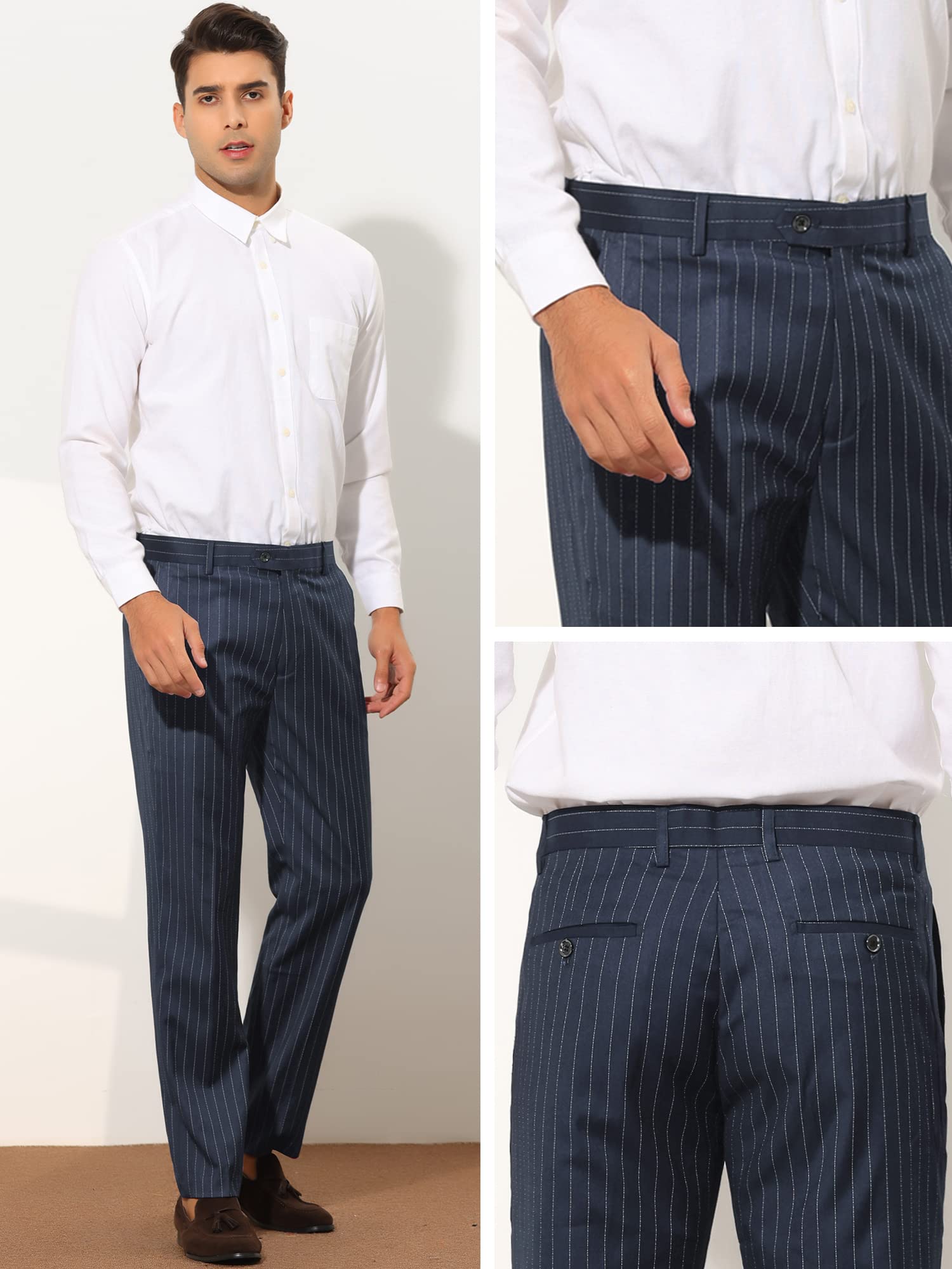 Details: Lars Amadeus Formal Striped Dress Pants for Men's Slim Fit Flat Front Office Business Trousers