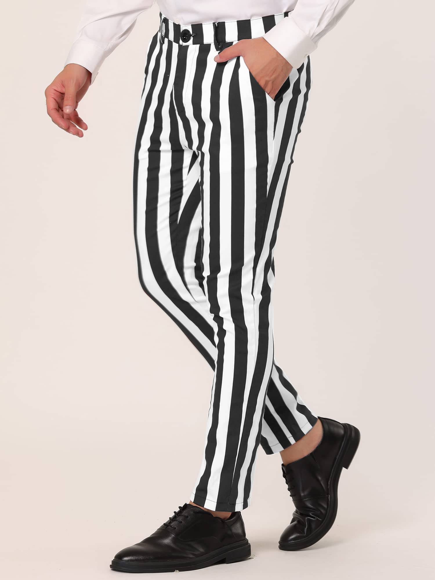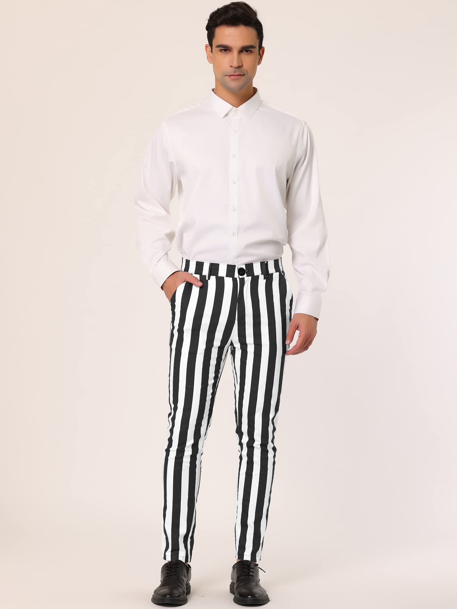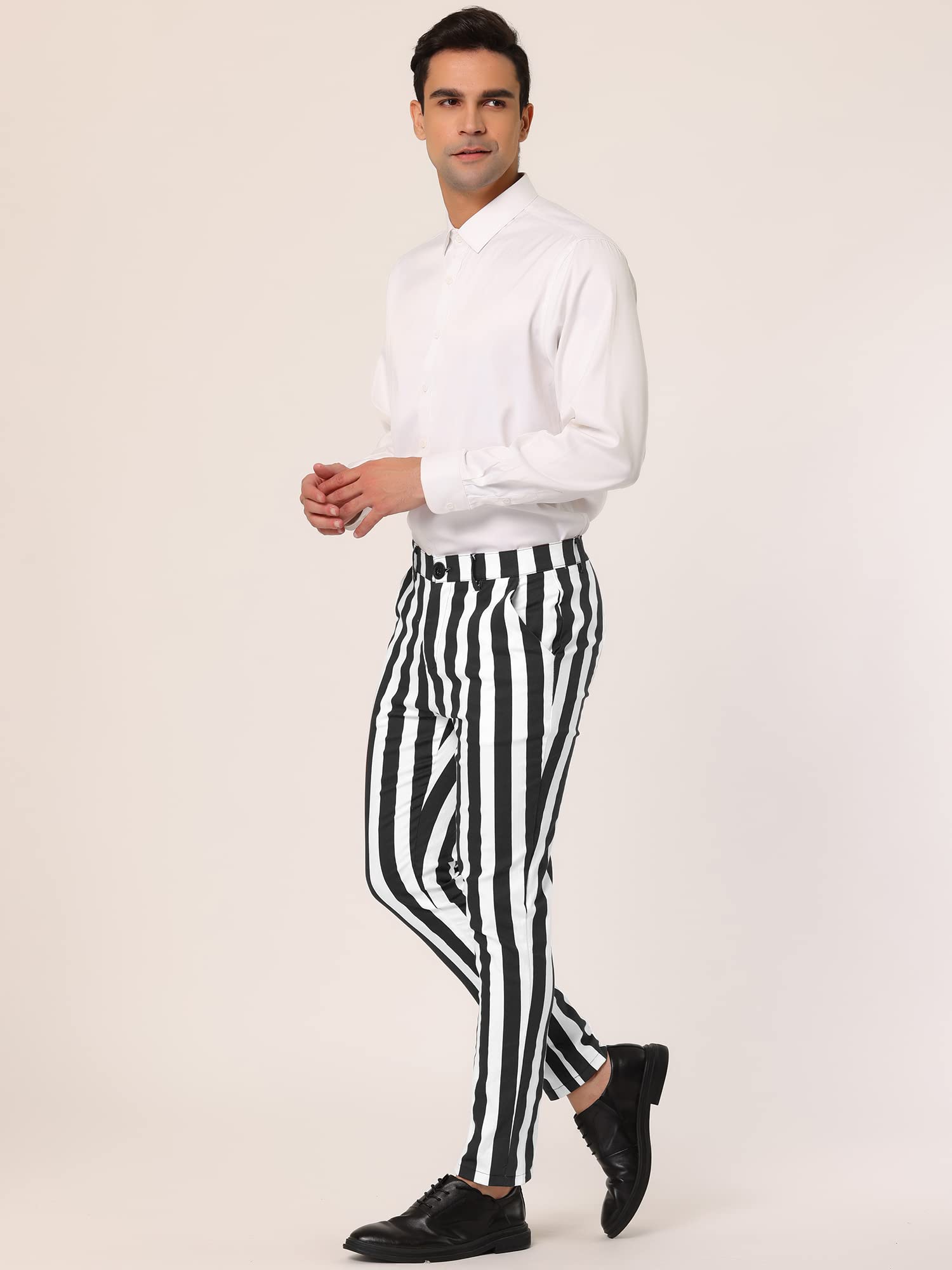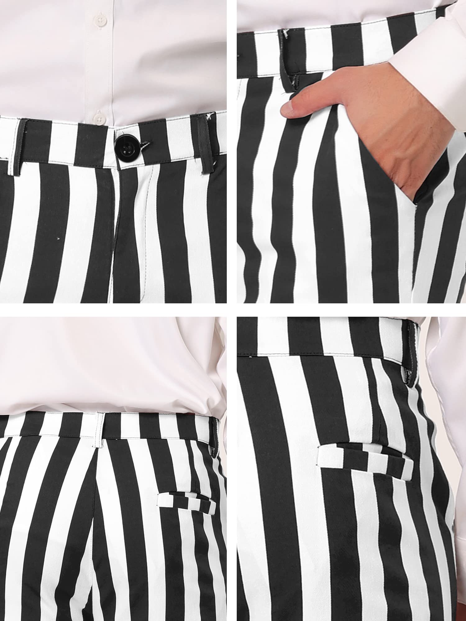 Details: Great tailoring with color block striped pattern, the reason to make you the one in the crowd.This pair of pants matches with leather shoes and solid shirt at the top can make you a highlight in the crowd.Meanwhile, it's easy to match your T-shirt, polo or shirts for your casual style at the same time.Suit up for office, meeting or dating in a refined slim fit striped dress pants.• Measurement (in inches)International Size----------Waist Girth----------Hip Girth----------Pants Length28------------------------------30 3/4------------------38 5/8-----------------------38 5/830------------------------------32 1/4------------------40 1/2-----------------------39 3/832------------------------------34 1/4------------------42 1/2-----------------------40 1/834------------------------------36 5/8------------------44 1/2--------------------------4136------------------------------38 5/8------------------46 1/2-----------------------41 3/438------------------------------41 ---------------------48 3/8-----------------------42 1/2