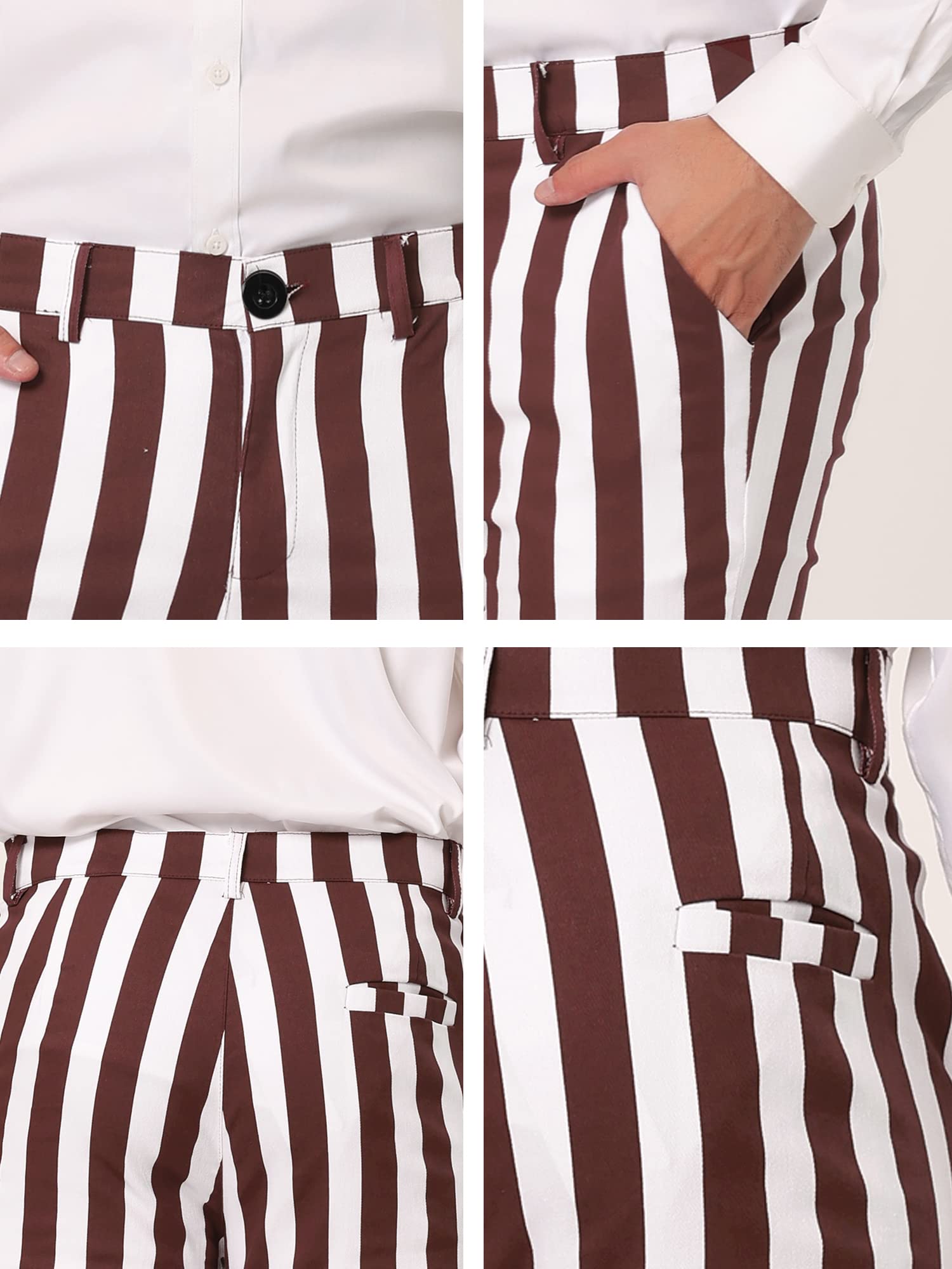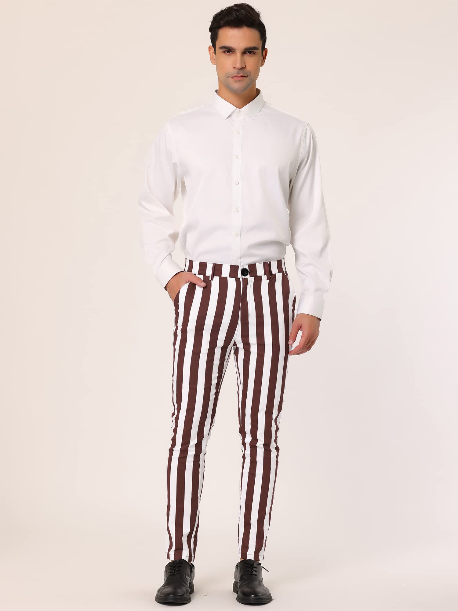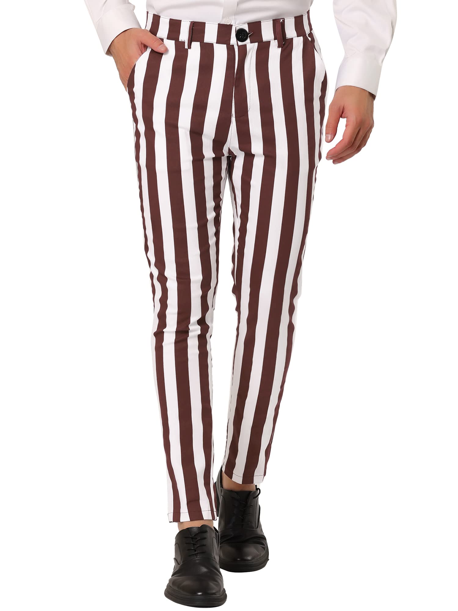 Details: Great tailoring with color block striped pattern, the reason to make you the one in the crowd.This pair of pants matches with leather shoes and solid shirt at the top can make you a highlight in the crowd.Meanwhile, it's easy to match your T-shirt, polo or shirts for your casual style at the same time.Suit up for office, meeting or dating in a refined slim fit striped dress pants.• Measurement (in inches)International Size----------Waist Girth----------Hip Girth----------Pants Length28------------------------------30 3/4------------------38 5/8-----------------------38 5/830------------------------------32 1/4------------------40 1/2-----------------------39 3/832------------------------------34 1/4------------------42 1/2-----------------------40 1/834------------------------------36 5/8------------------44 1/2--------------------------4136------------------------------38 5/8------------------46 1/2-----------------------41 3/438------------------------------41 ---------------------48 3/8-----------------------42 1/2