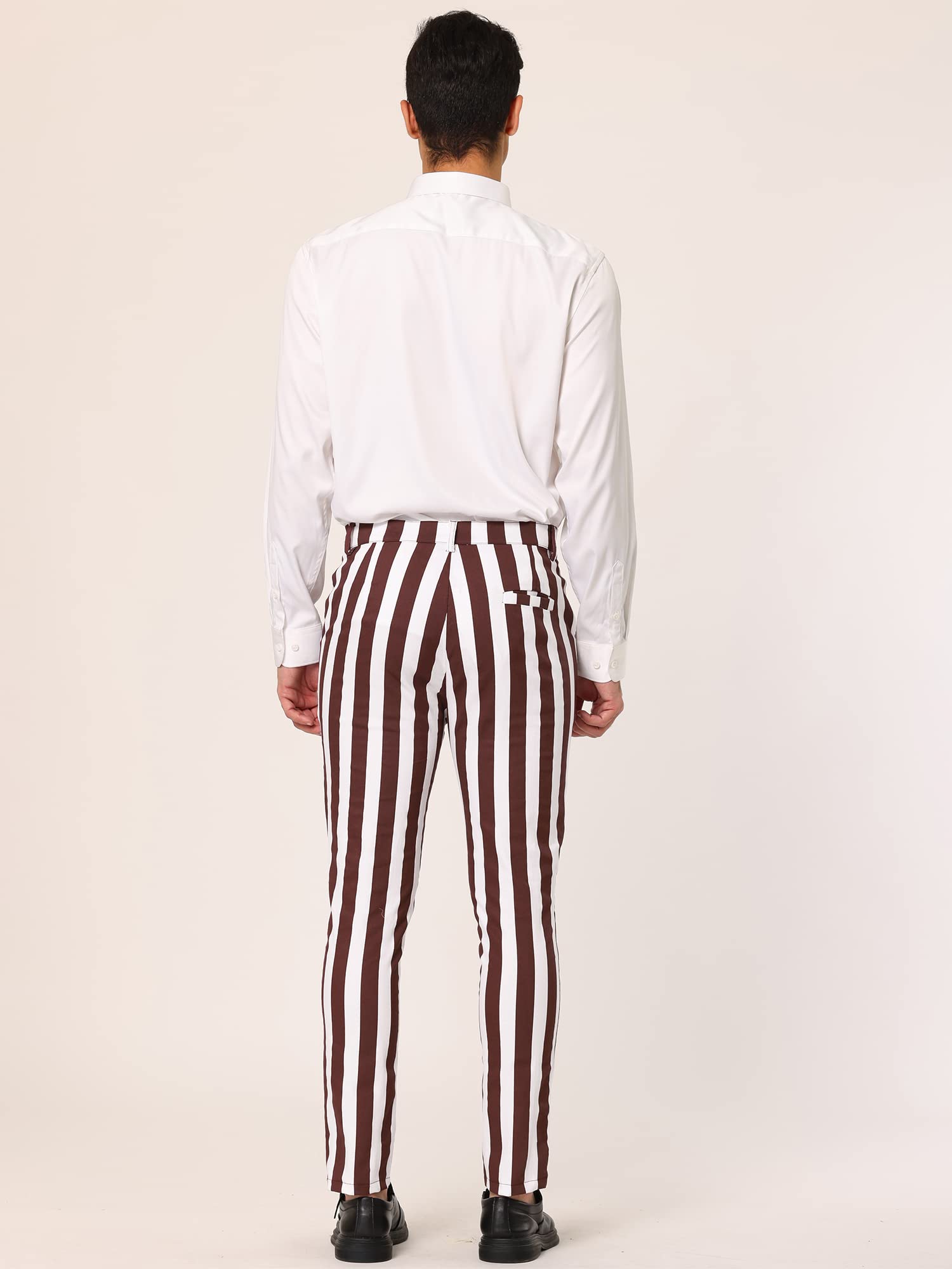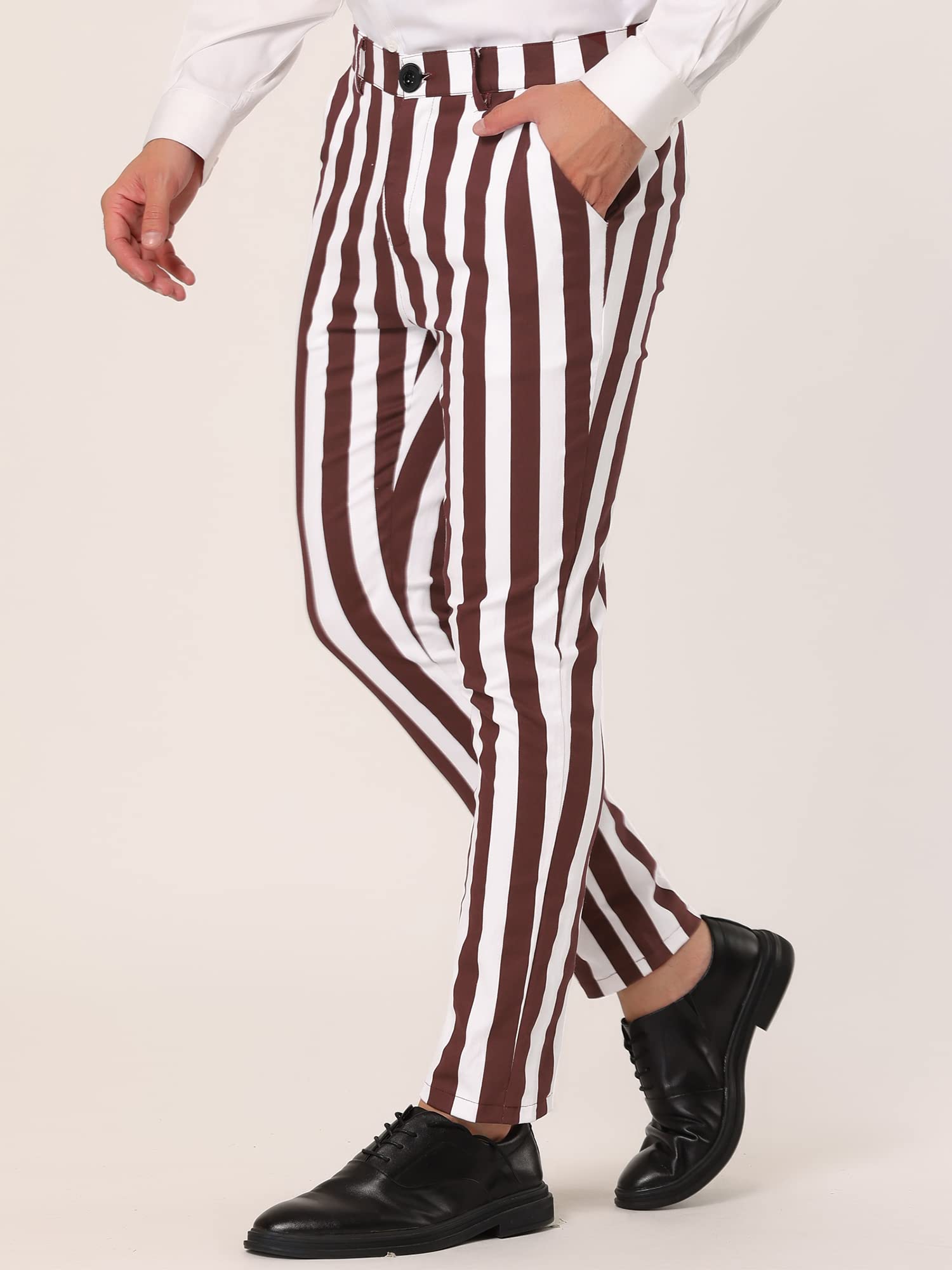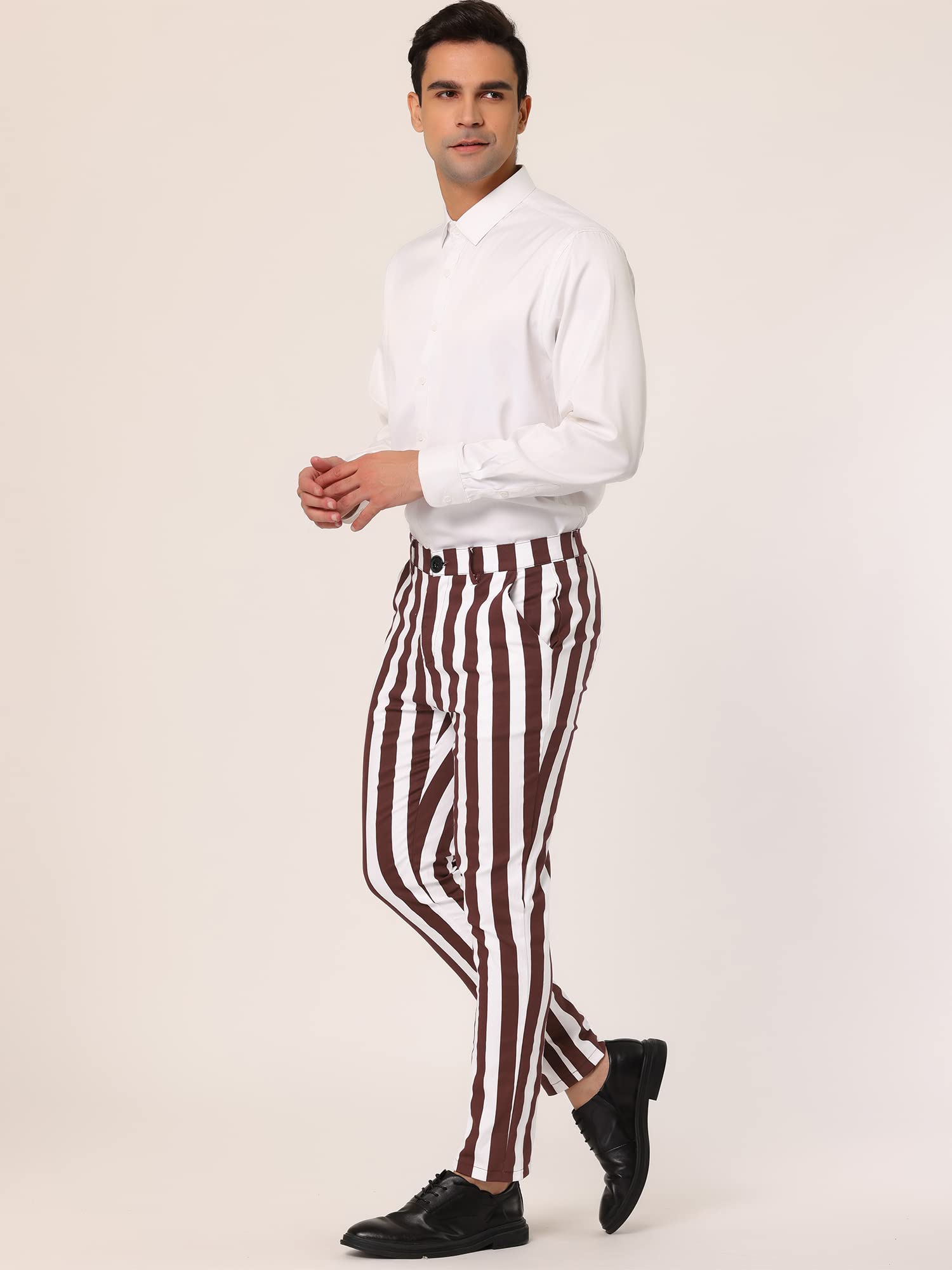 Details: Great tailoring with color block striped pattern, the reason to make you the one in the crowd.This pair of pants matches with leather shoes and solid shirt at the top can make you a highlight in the crowd.Meanwhile, it's easy to match your T-shirt, polo or shirts for your casual style at the same time.Suit up for office, meeting or dating in a refined slim fit striped dress pants.• Measurement (in inches)International Size----------Waist Girth----------Hip Girth----------Pants Length28------------------------------30 3/4------------------38 5/8-----------------------38 5/830------------------------------32 1/4------------------40 1/2-----------------------39 3/832------------------------------34 1/4------------------42 1/2-----------------------40 1/834------------------------------36 5/8------------------44 1/2--------------------------4136------------------------------38 5/8------------------46 1/2-----------------------41 3/438------------------------------41 ---------------------48 3/8-----------------------42 1/2