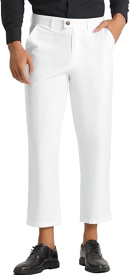 Lars Amadeus Men's Formal Pants Flat Front Skinny Office Prom Cropped Dress Pants