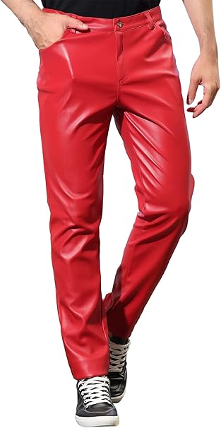 Lars Amadeus Men's Metallic Pants Slim Fit Night Club Disco Shiny Faux Leather Pants