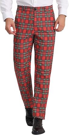 Lars Amadeus Men's Plaid Business Pants Regular Fit Formal Prom Checked Trousers