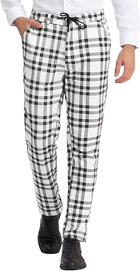 Lars Amadeus Men's Plaid Dress Pants Casual Slim Fit Flat Front Skinny Business Checked Plaid Pants