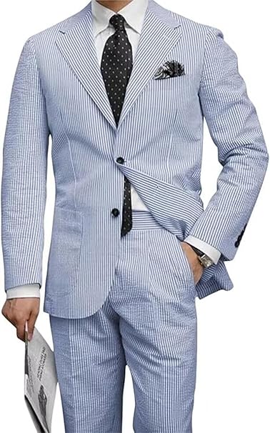 2 Piece Seersucker Suits for Men, Seersucker Blazer Pants Set Slim Fit Tuxedos Summer Grooms Groomsmen Beach Wedding