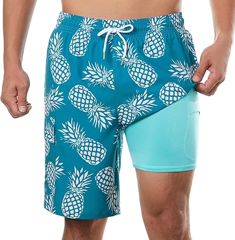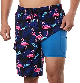 BRISIRA Mens Swim Trunks 9 Inch Inseam Board Shorts with Compression Liner Swimsuit Bathing Suit Quick Dry Cargo Pocket