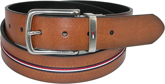 Tommy Hilfiger Men's Reversible Jean Belt with Ribbon Inlay, 42, Tan/Black