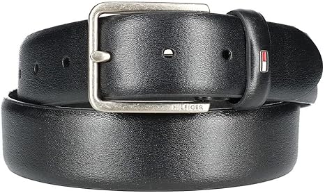 Tommy Hilfiger Men's Smooth Feather Edge Leather Belt, 32, Black