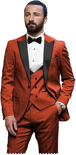 HUUTOE Men's 3 Piece Suits Slim Fit Elegant Wedding Tuxedo One Button Blazer Double Breasted Vest Pants Suit Set with Bow Tie