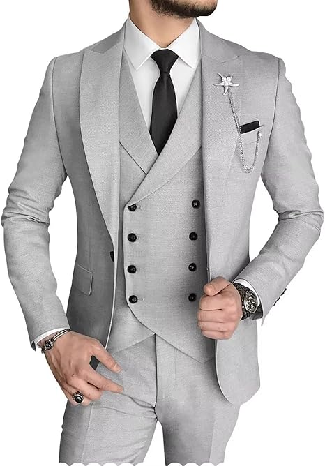 Men's 3 Piece Suit Double Breasted Suits Men Slim Fit Wedding Tuxedo One Button Formal Groomsmen Prom Dinner Suit