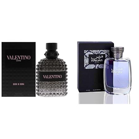 Valentino Uomo Born In Roma EDT Spray Men 3.4 oz & RASASI Hawas for Men Eau de Parfum Spray, 3.33 Ounce