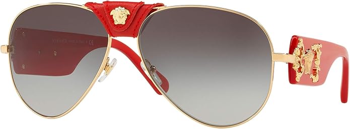 Versace Baroque VE 2150Q 100211 Gold Red Leather Metal Aviator Sunglasses Grey Gradient Lens