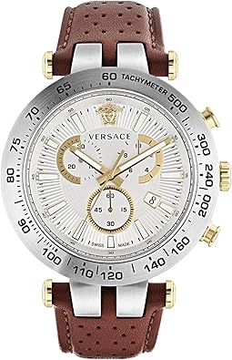 Versace Bold Chrono Collection Luxury Mens Watch Timepiece with a Brown Strap Featuring a Stainless Steel Case and Silver Dial