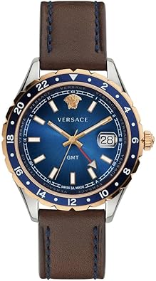 Versace Collection Luxury Mens Watch Timepiece with a Brown Strap Featuring a Brown Case and Blue Dial
