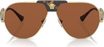 Versace Man Sunglasses Gold Frame, Dark Brown Lenses, 63MM