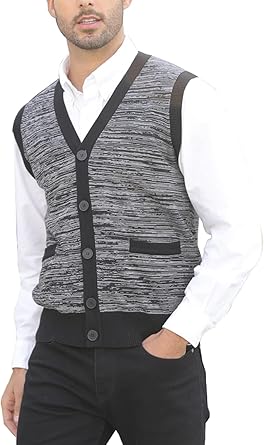 Aoysky Men's Sweater Vest Relaxed Fit V Neck Sleeveless Button Cardigan Knitwear