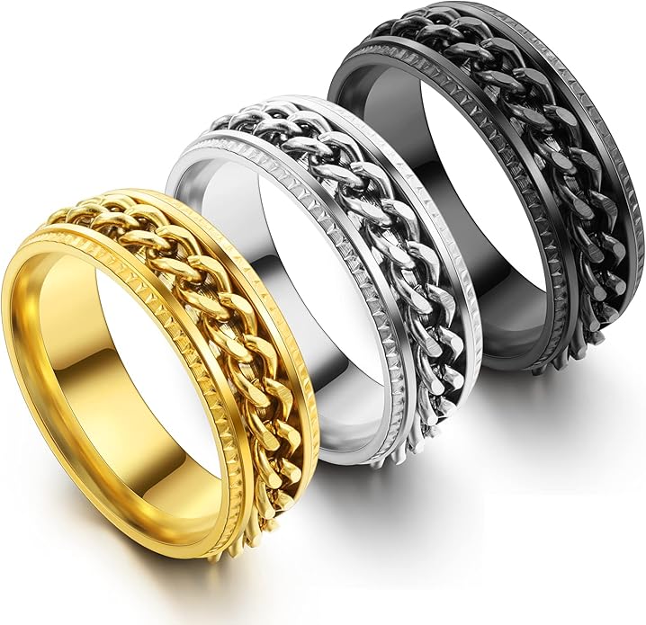 3 Pcs Men's Tie Ring Tie Clasp 1 In Tie Rings for Neck Ties Solid Tie Tacks Accessories with Box for Wedding Jewelry Gift (Chain Style)