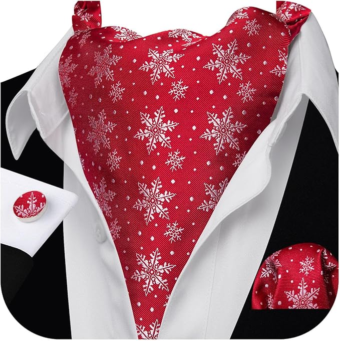 Barry.Wang Mens Chiristmas Ascot Tie Set Cravat Scarf Self Neckties Pocket Square Cufflinks Dress Xmas Party Holiday Festival
