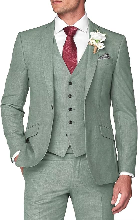 HUUTOE Men's 3 Piece Suit Slim Fit Prom Suits Tuxedo for Men Wedding Formal Mens Suit Solid Blazer Jacket Vest Pants Set