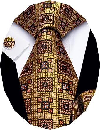 2.75'' Skinny Ties for Men Silk Tie Striped Plaid Necktie and Pocket Square Cufflinks Set Business Wedding Party