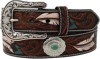 ARIAT Ladies Belt Feather Floral Embossed Oval Concho
