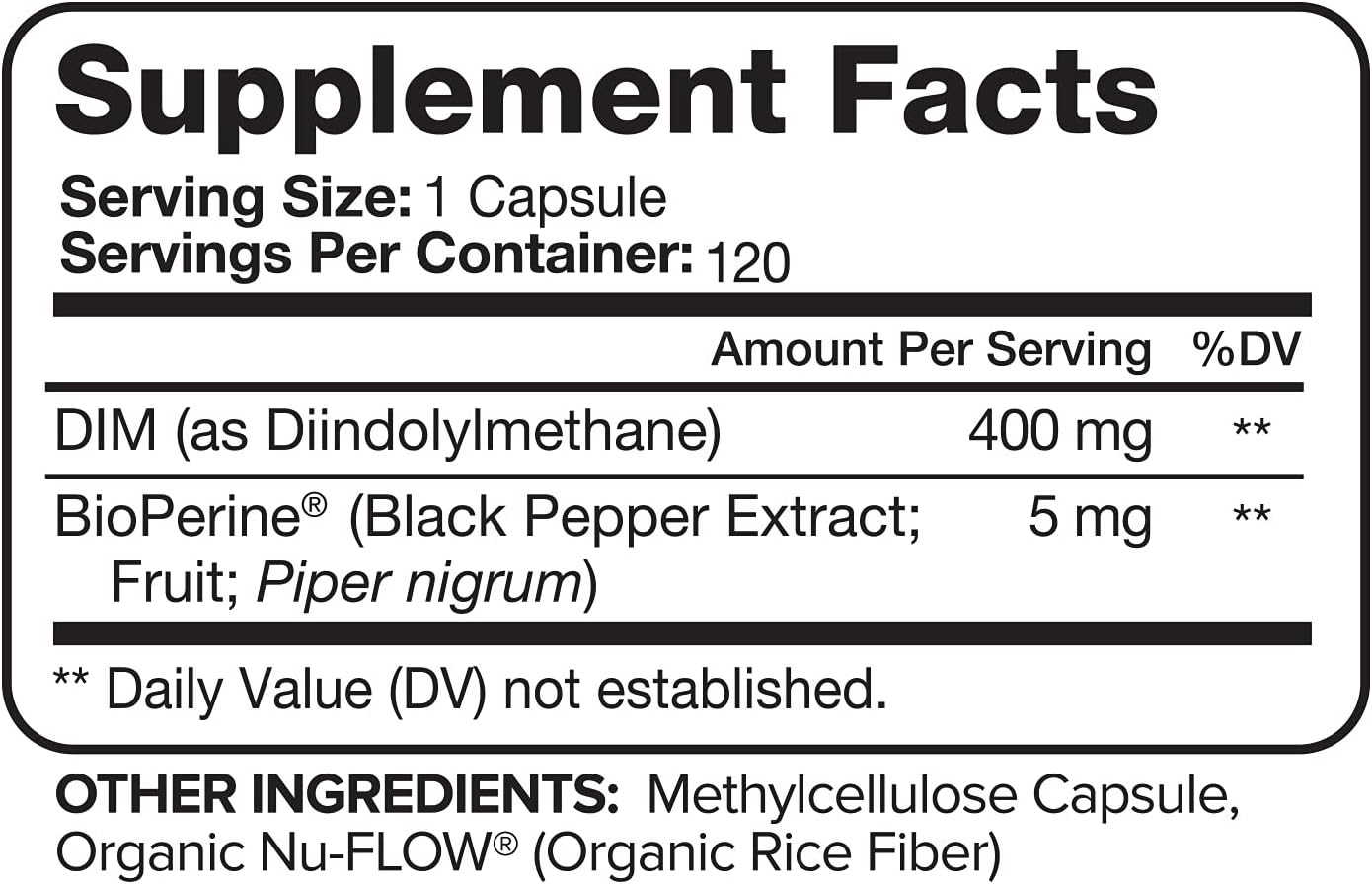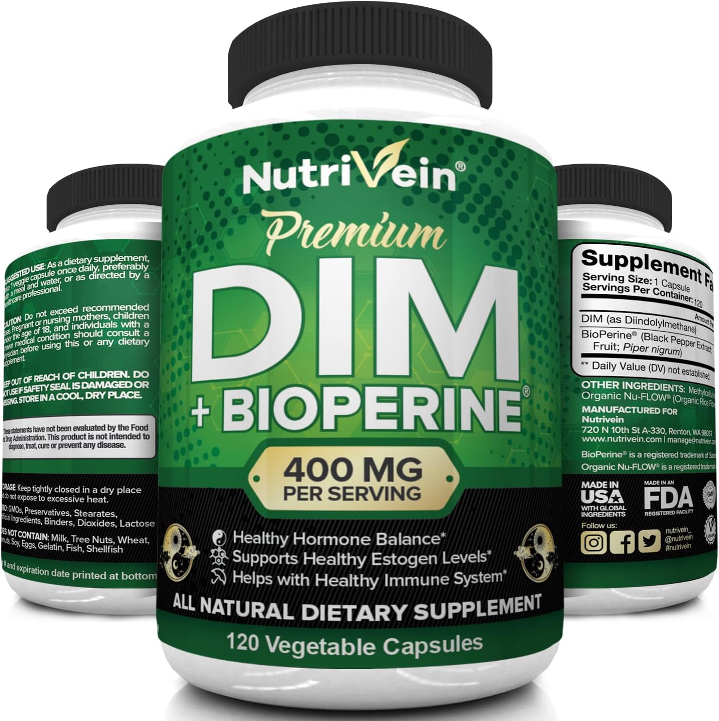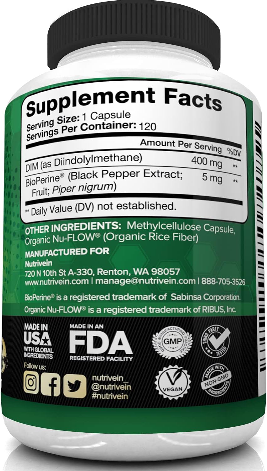 • ✔ Equivalent To Eating 1.5 Pounds Of Brocolli A Day - With over 400mg of DIM in each capsule, Nutrivein is offering 4x the dose of the most popular DIM supplements on Amazon. A natural detox and body cleanse. Each bottle contains a 120 day supply of DIM (120 Capsules, 400mg DIM 5mg Bioperine, 120 day supply)