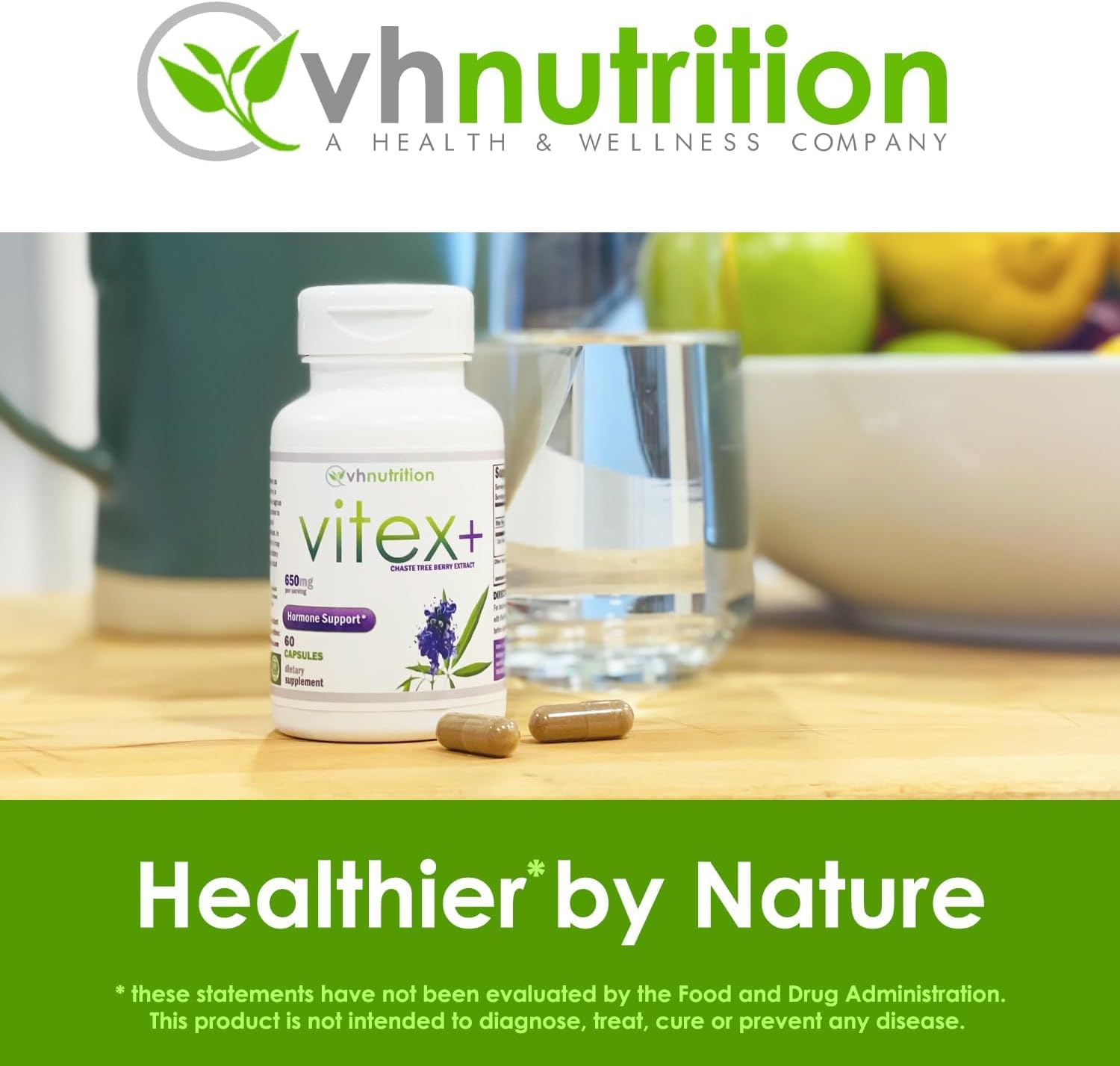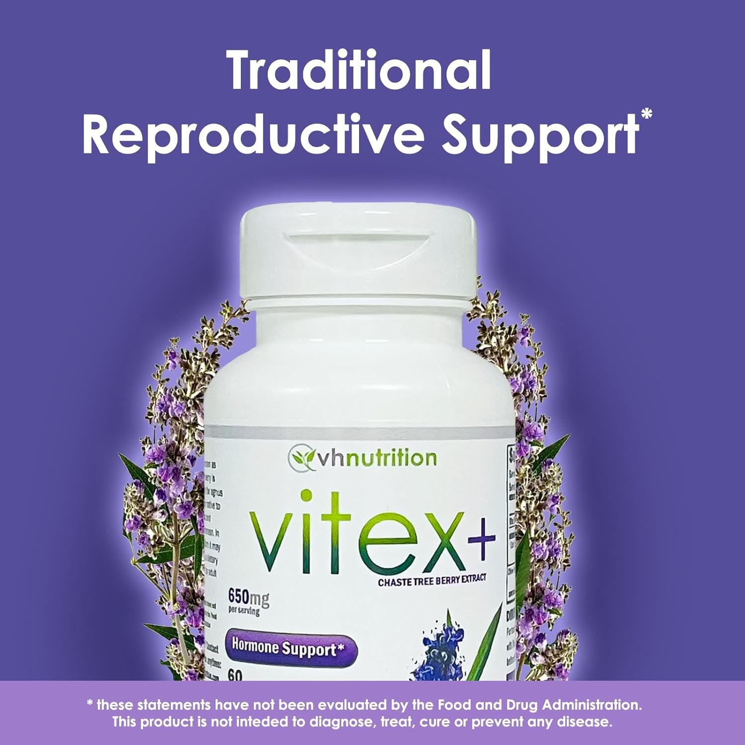VH Nutrition VITEX+ | Vitex Chasteberry Supplement for Women | Hormonal Balance* and Fertility Support* | 650mg Per Serving of Vitex Berry Extract Powder | 60 Capsules
