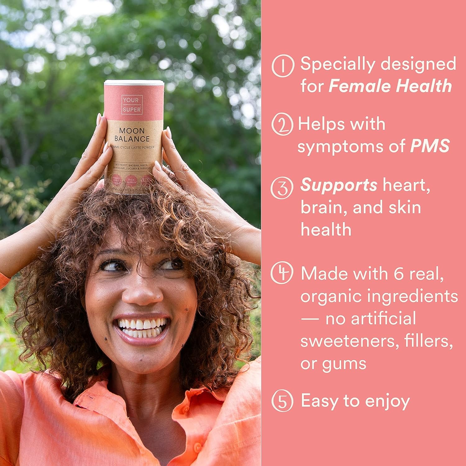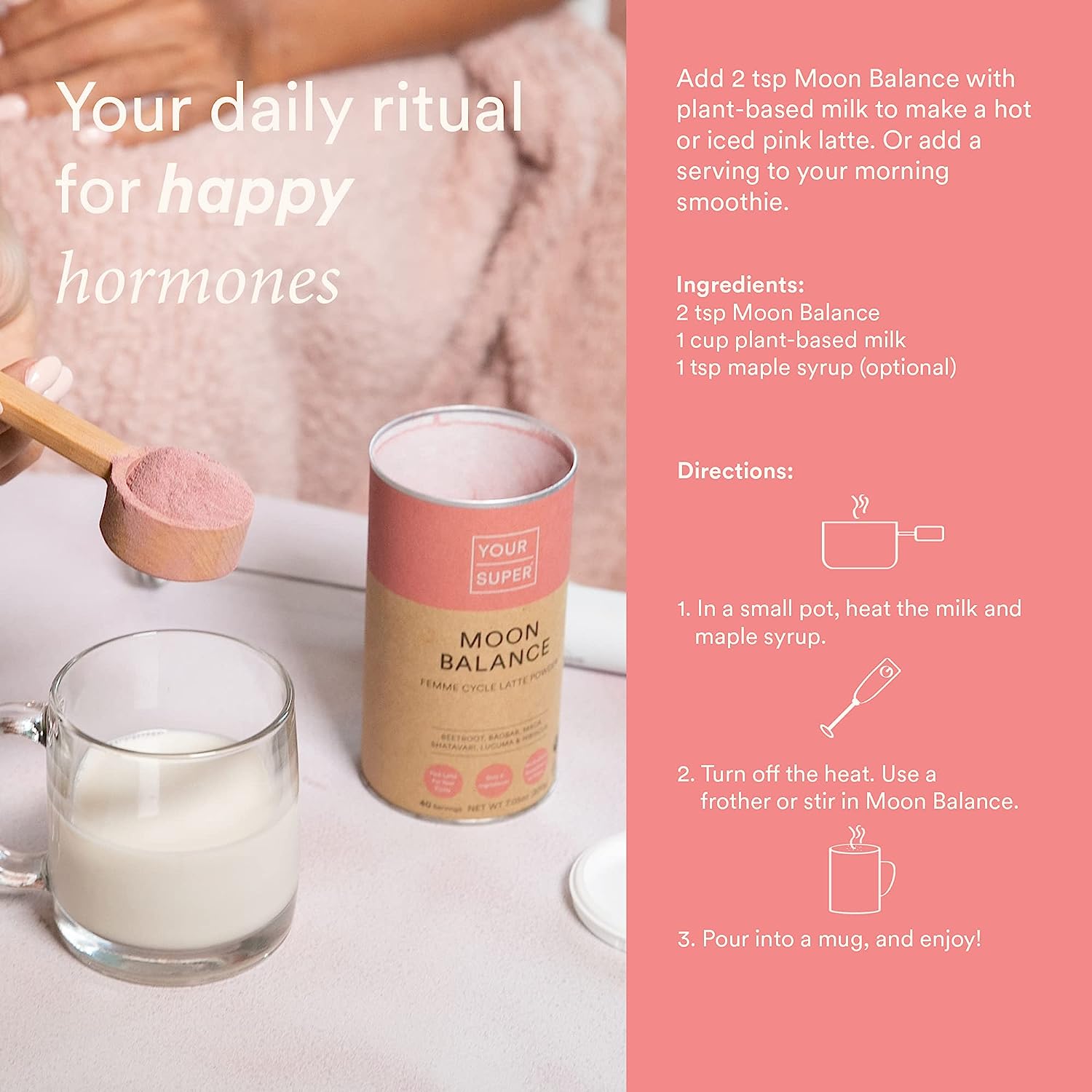 Your Super Moon Balance Superfood Powder – Natural Hormone Balance for Women, Plant Based Menopause Support & PMS Relief with Organic Maca, Baobab, Hibiscus, Shatavari & Beet Root Powder (40 Servings)