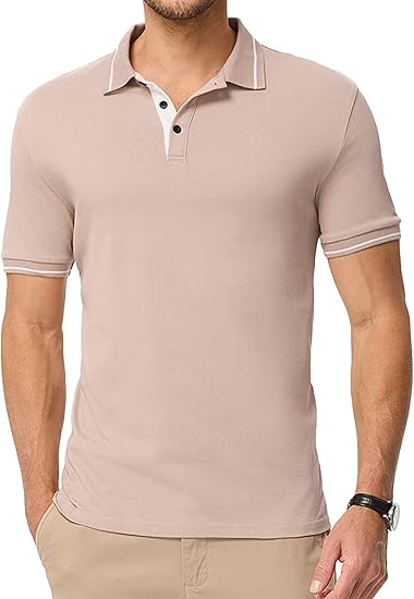 Men's Polo Shirts Classic Fit Button Up Short Sleeve Basic Cotton Tees Golf Work Tops