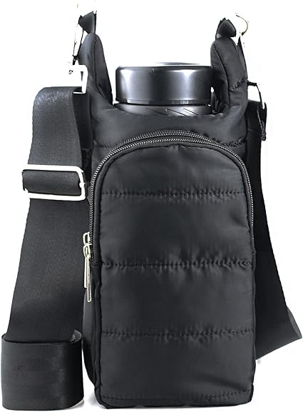 Puffer Water Bottle Holder Quilted Hydrobag Sports Pouch Bag with Adjustable Shoulder Strap Flask Sling Bag