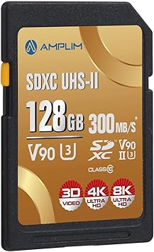 Amplim 128GB V90 UHS-II SD SDXC Card, 300MB/S 2000X Read/Write Lightning Speed Performance, Extreme Read, U3 Secure Digital Memory Storage for Professional Photographer and Videographer