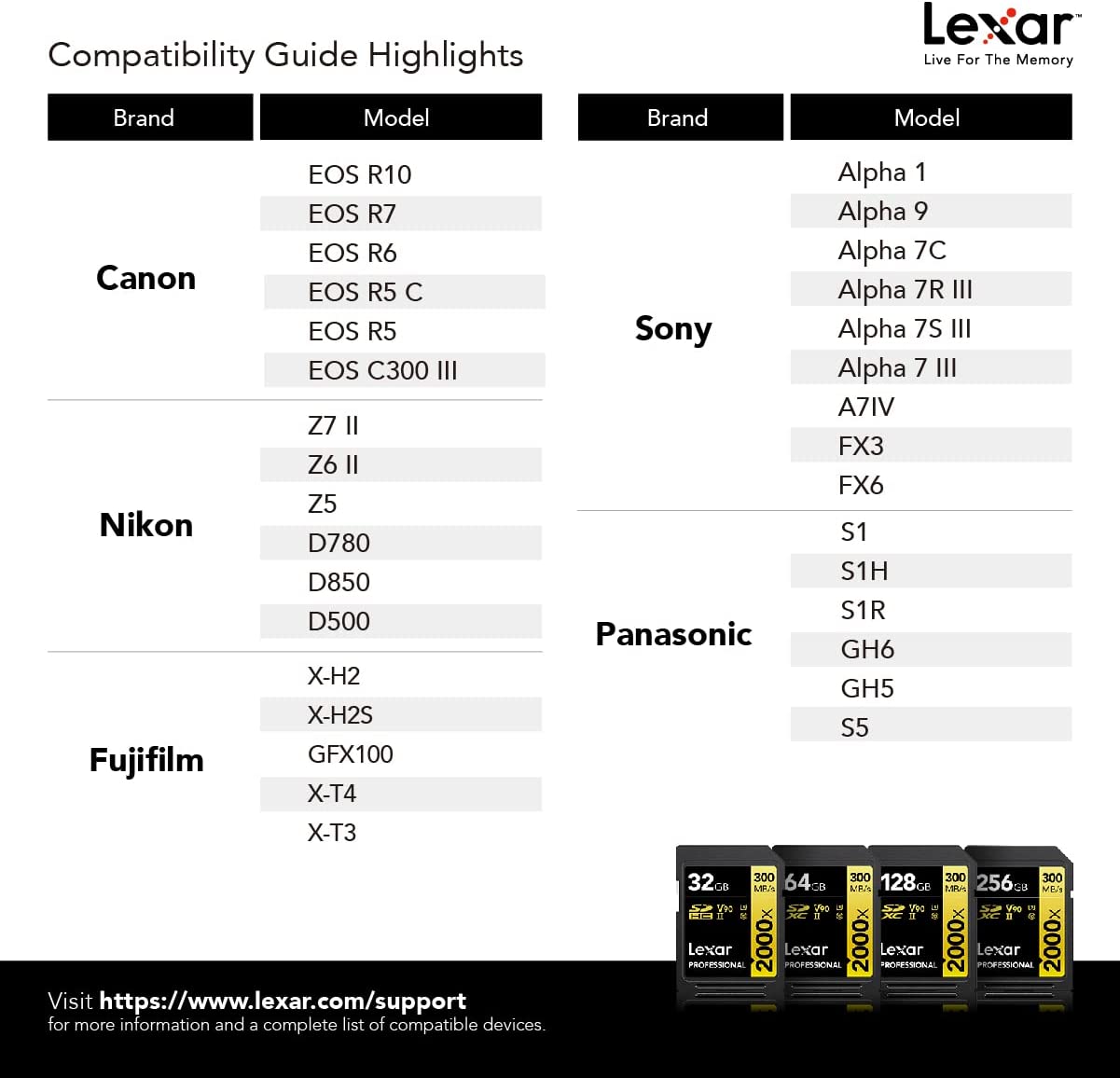 Lexar Professional 2000x SDHC/SDXC UHS-II cards let you quickly capture and transfer high-quality photos and extended lengths of Full-HD and cinema-quality 4K video, with a read transfer speed up to 300MB/s (2000x). The cards also leverage UHS-II technology (UHS Speed Class 3 (U3)) for high-speed performance, so you'll power through post-production with super-fast file transfer from card to computer. This dramatically accelerates workflow from start to finish, so you can save time and get back to the business of photography. These cards also come with a limited lifetime product support.