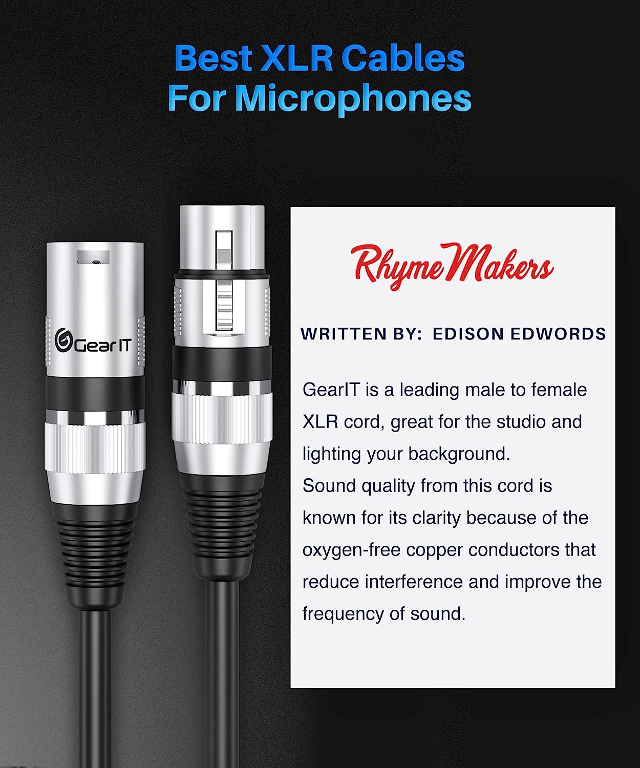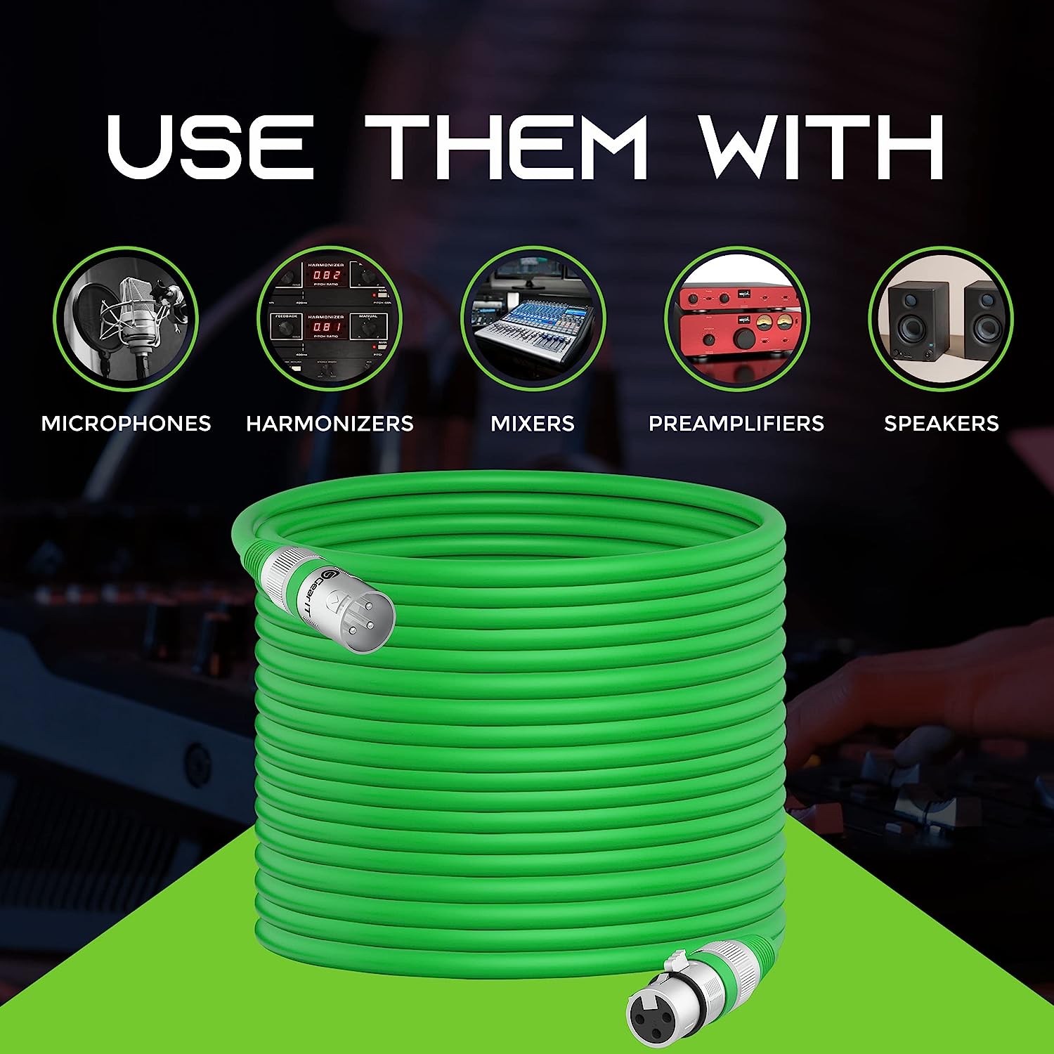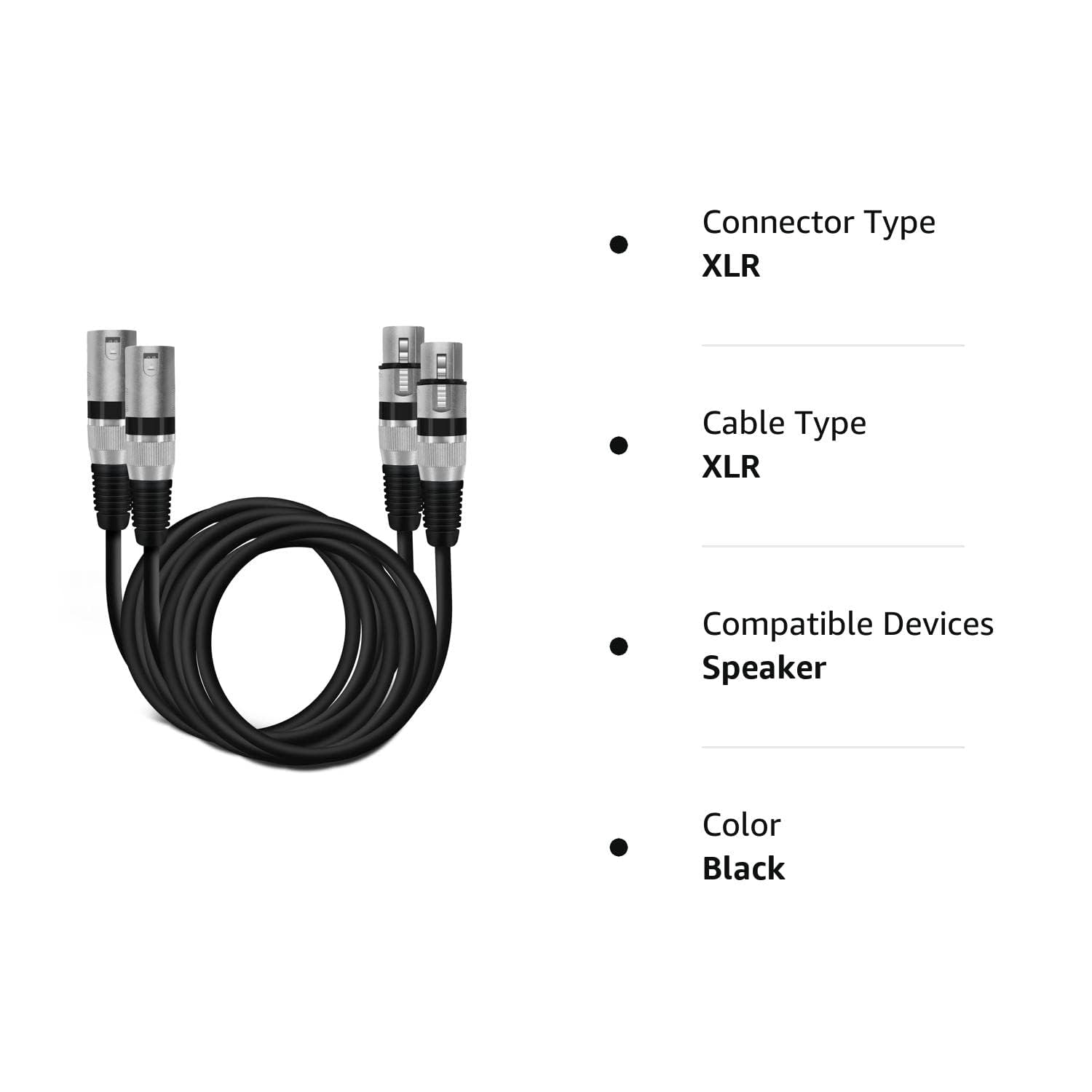 PROFESSIONAL GRADE - 3-pin XLR male to female microphone cable for lighting, mixing and other professional recording equipment QUALITY YOU CAN HEAR - OFC Oxygen Free Copper conductors for exceptional sound quality; Spiral braided copper shielding to reduce interference and insulate excess noise; Improved frequency through polyethylene insulation SUPERIOR DESIGN - Heavy duty metal connectors with molded strain relief; Soft flexible PVC jacket with 6.0mm outer diameter UNIVERSAL COMPATIBILITY - This 3-pin XLR mic cord works with harmonizers, digital mixers, patch bays, preamplifiers, speakers, microphones, stage lighting and more LIMITED LIFETIME REPLACEMENT WARRANTY + 30-DAY, 100% MONEY-BACK GUARANTEE - We are committed to our customers' satisfaction, which is why we offer a Limited Lifetime Replacement Warranty and a 30-Day, 100% Money-Back Guarantee. If you're not completely satisfied, simply contact us directly, within 30 days of purchase, for a full refund!