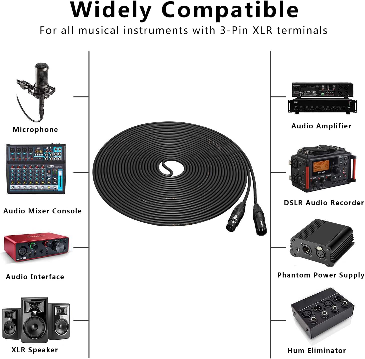 • → 5. WHAT YOU GET - 2 packs of 50 ft XLR Microphone Cable male to female with velcro belt for managing. Guaranteed for Life.
