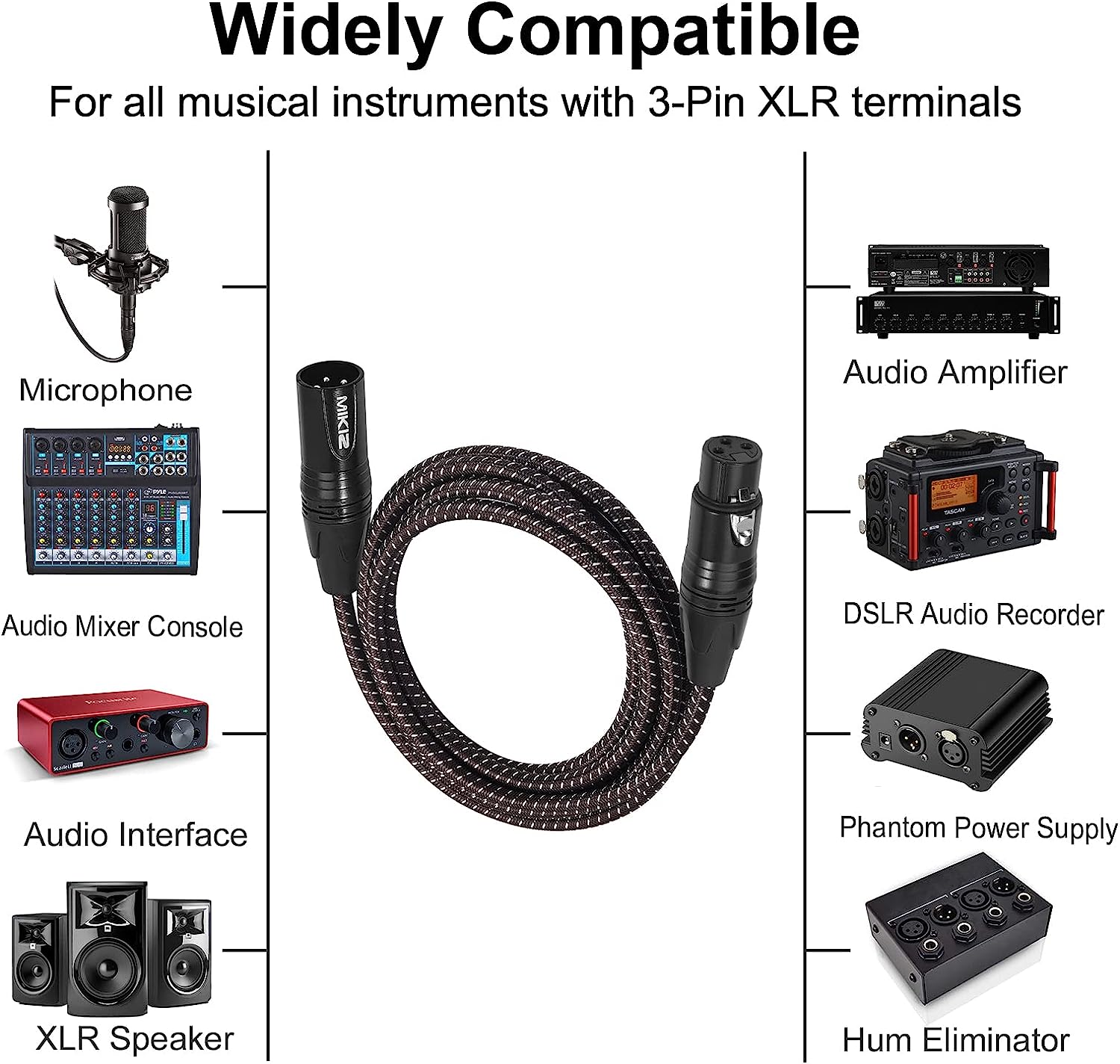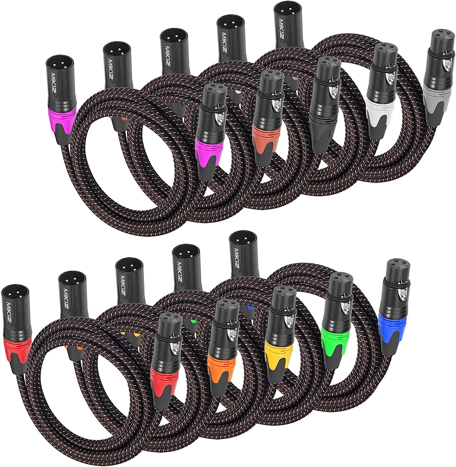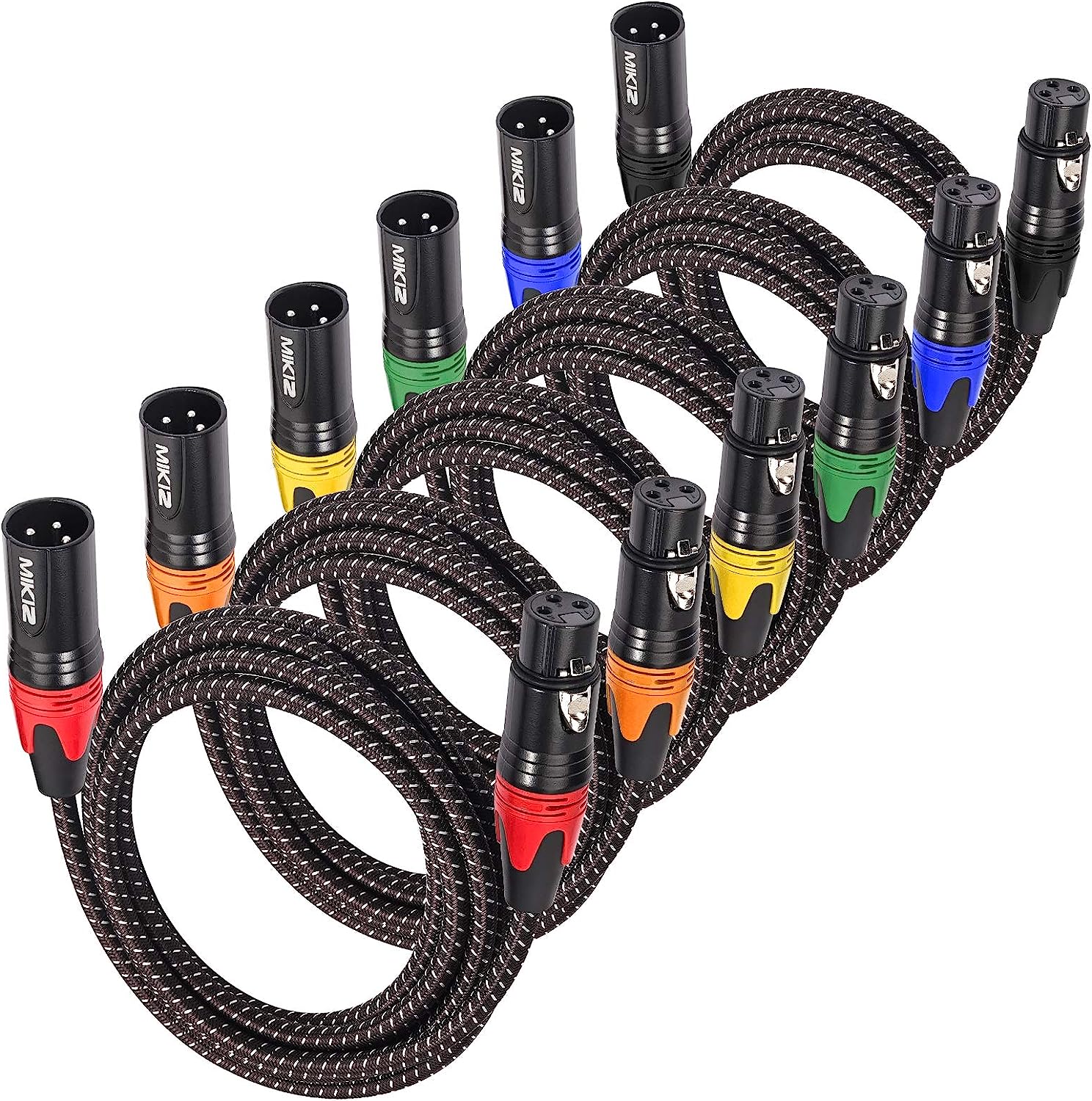 MIKIZ XLR Microphone Cables 25 ft 6 Packs Braided Premium Balanced XLR Cable 3-Pin Male to Female