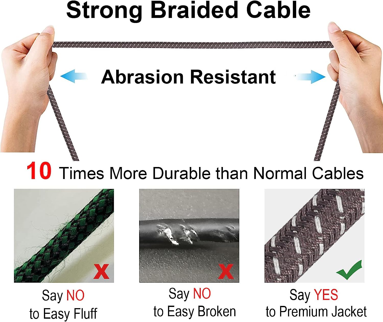 • 4.《10 Times More Durable》 Flexible cords well protected by high quality material of braided sleeves, 10 times more durable and longer service life than normal cables.