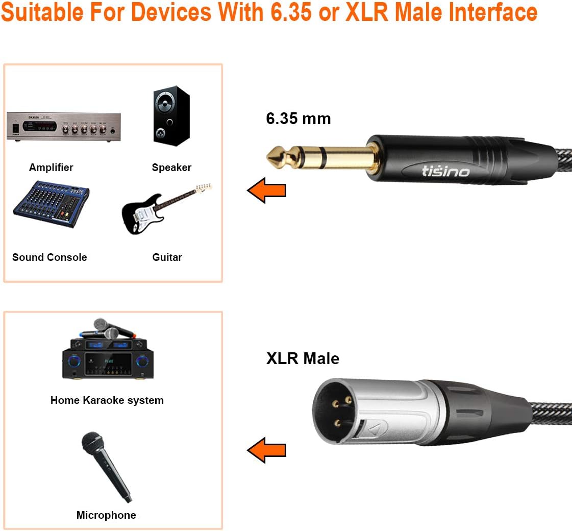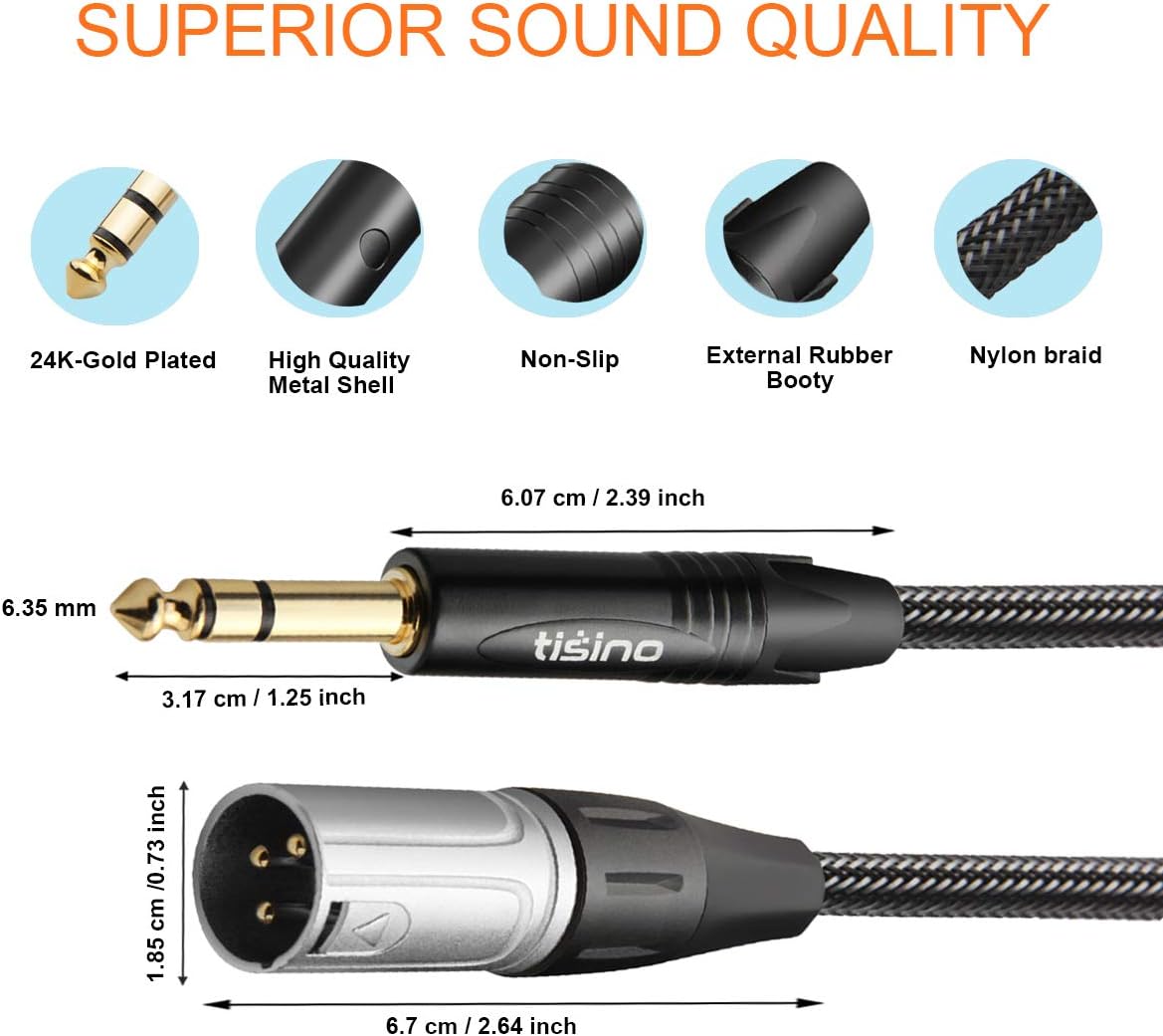 tisino 1/4 to XLR Cable, Nylon Braid Quarter inch TRS to XLR Male Balanced Interconnect Cord Patch Cable- 3.3ft