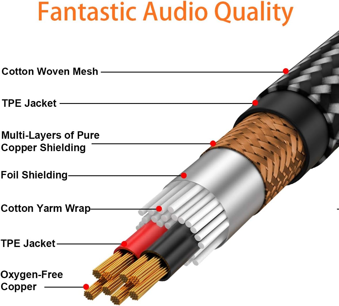 • With Heavy Duty 24K Gold-plated XLR and 6.35 mm connectors, it could eliminate signal loss and static noise, provide durability and improve the signal transmission, and the copper shell blocks any interference which prevents the loss of sound quality.