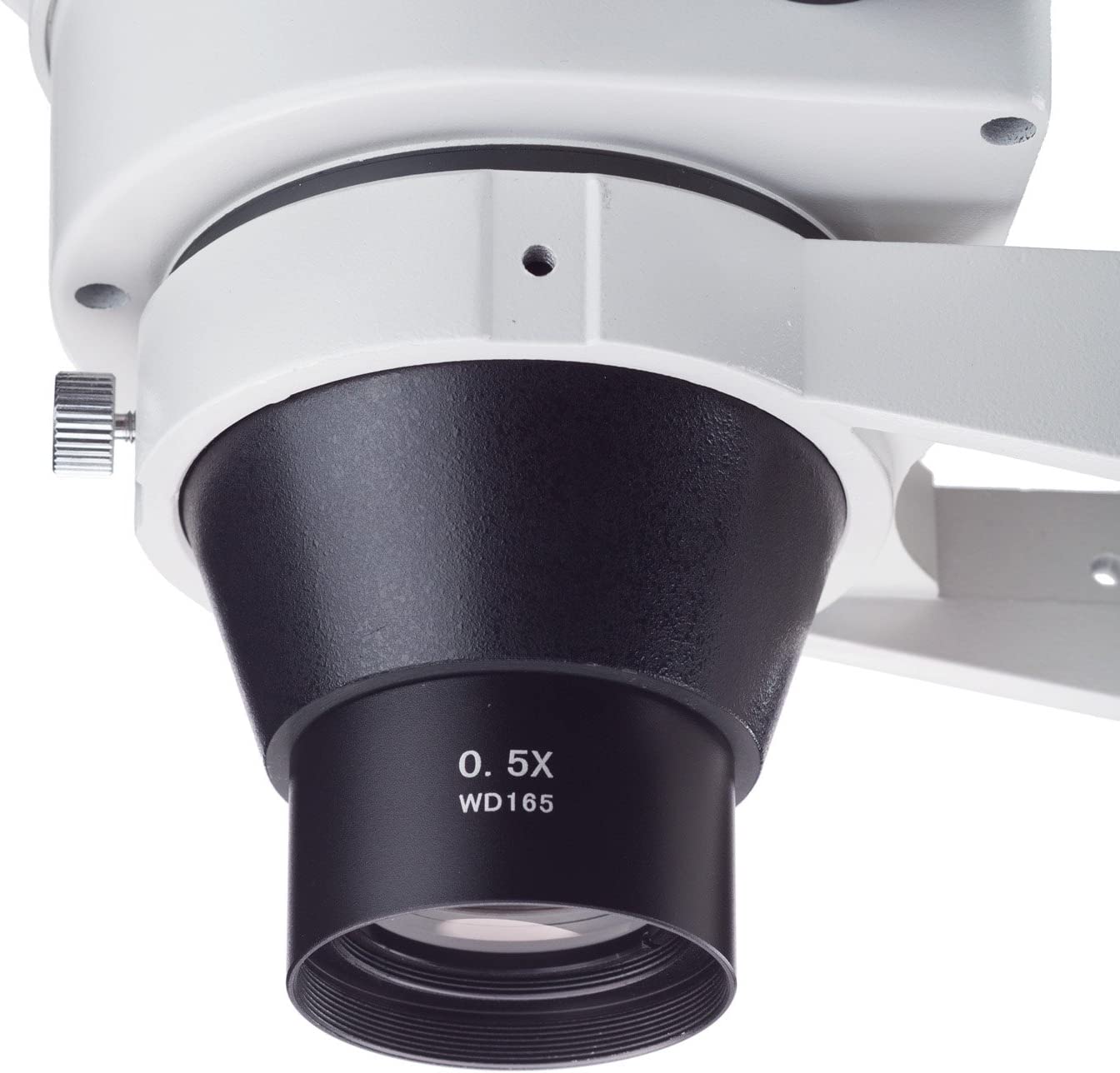This is a brand new 0.5X Barlow (auxiliary objective) lens for stereo microscopes. It doubles the working distance and field of view of your microscope and cuts magnification power by half. This lens comes with a 1-7/8" (48mm) mounting thread and goes with SM and SW series stereo microscopes. Its retail value is $180.