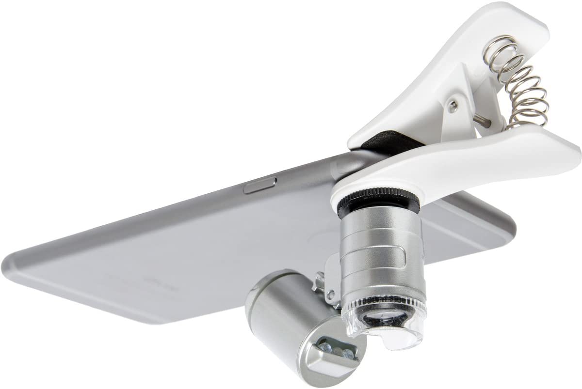 The ACTIVE EYE Universal Mobile phone microscope is a compact, lightweight 60x microscope that can be clipped onto smartphones & Mobile phones that are equipped with a camera. It is used for viewing very small objects & areas. It is especially recommended for gardening & plant health examinations such as pest & disease assessments. The clip can also be unscrewed from the focusing barrel & Lens so that the microscope can be used independently of a mobile phone if necessary.
