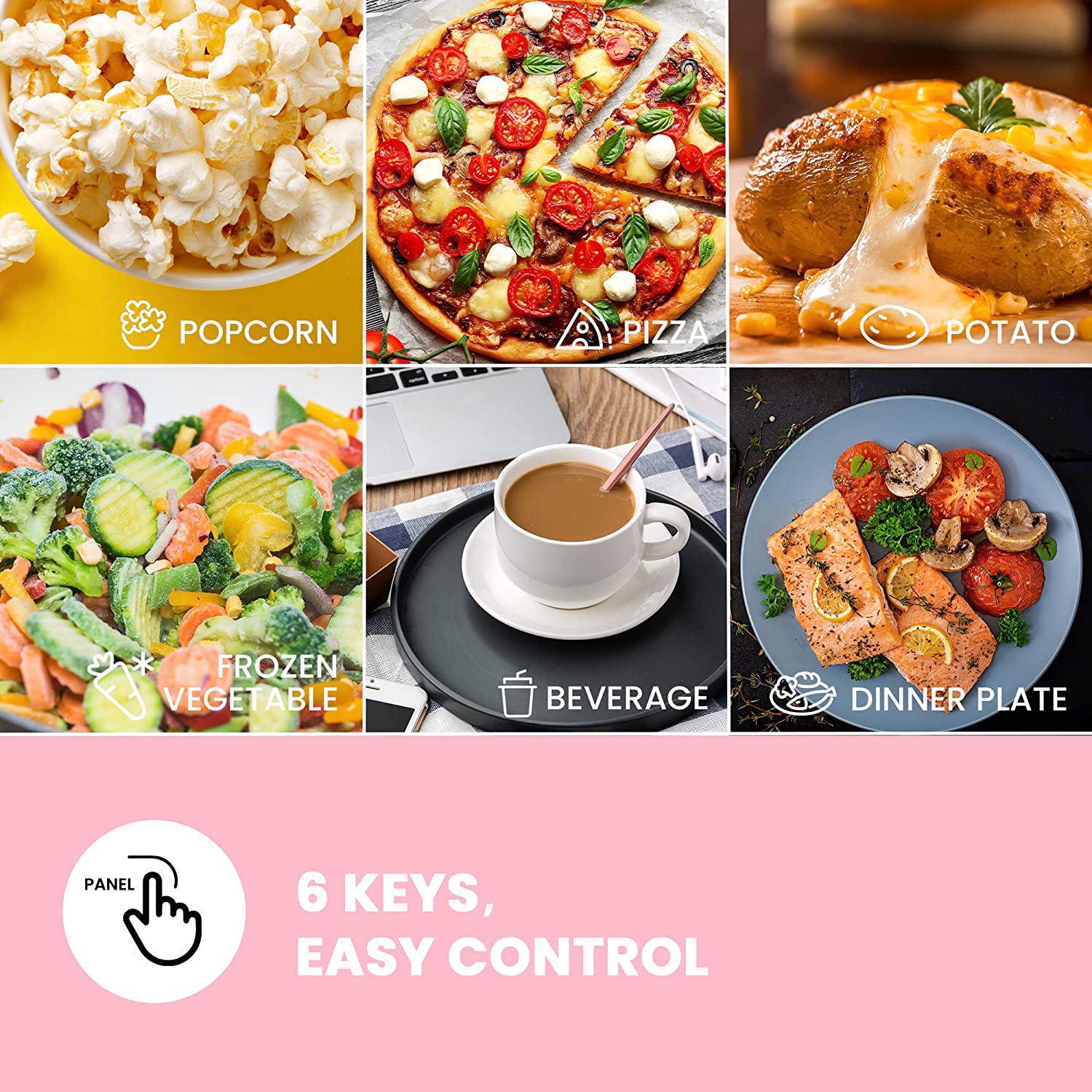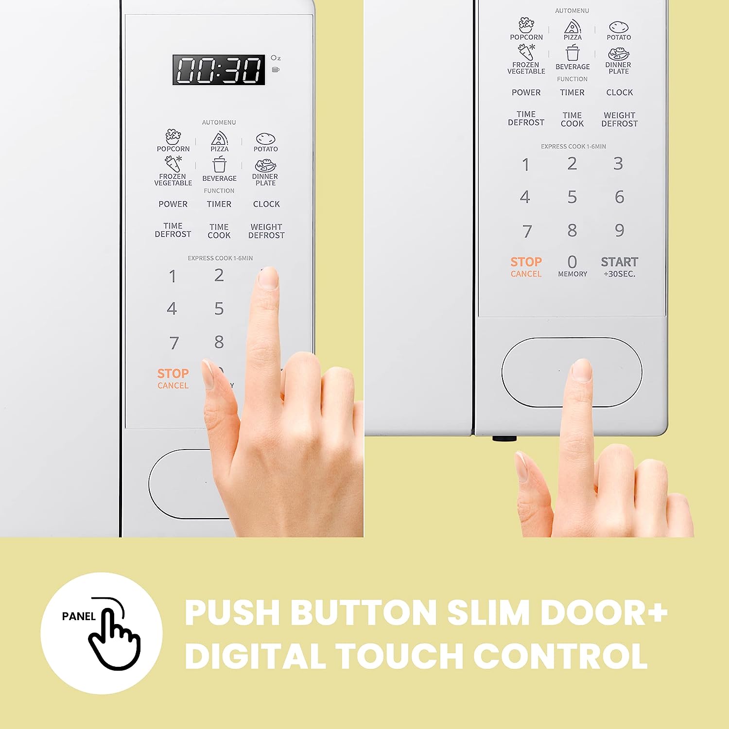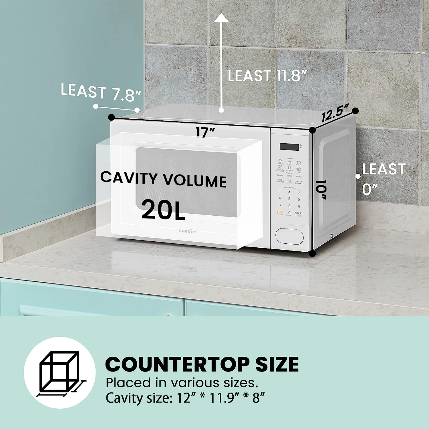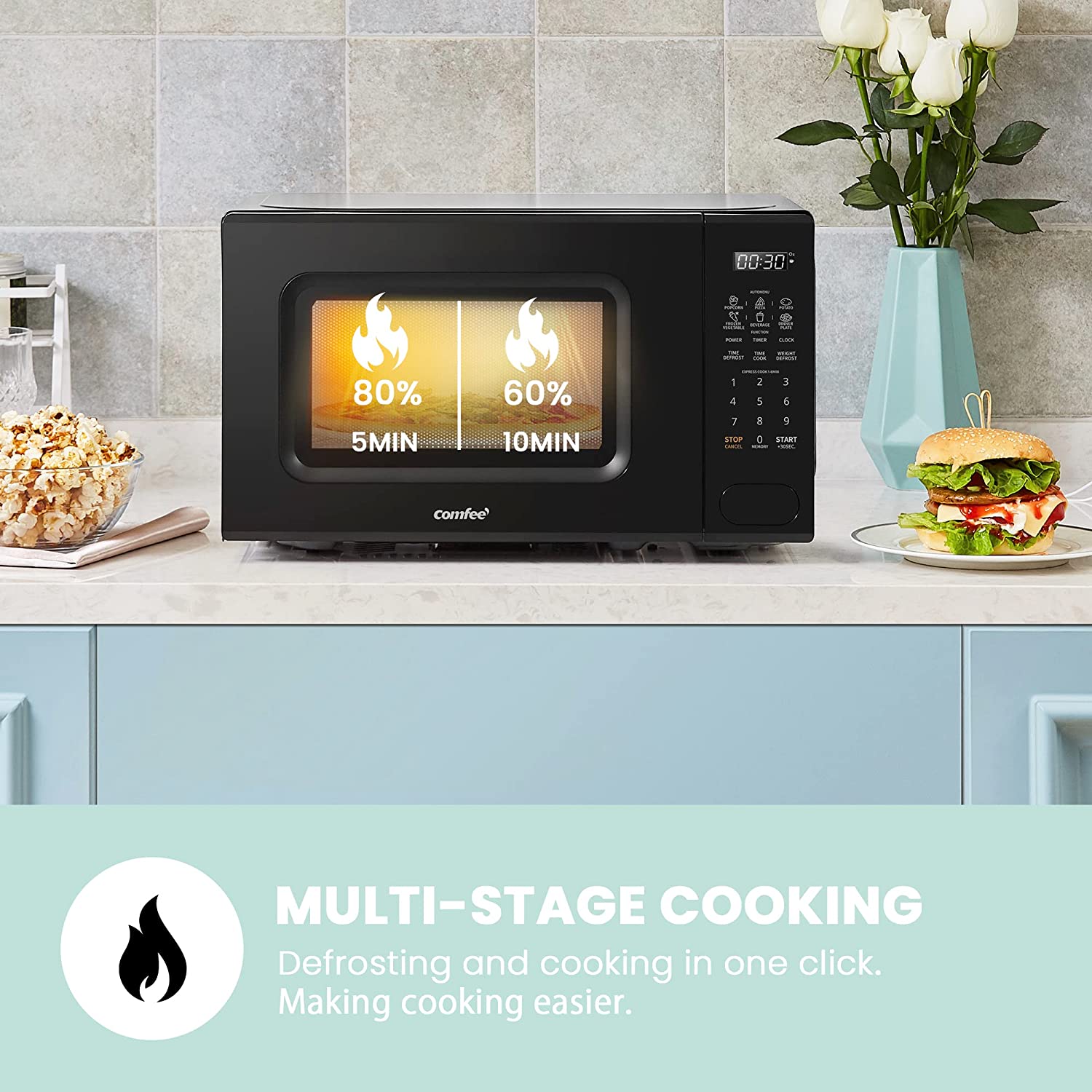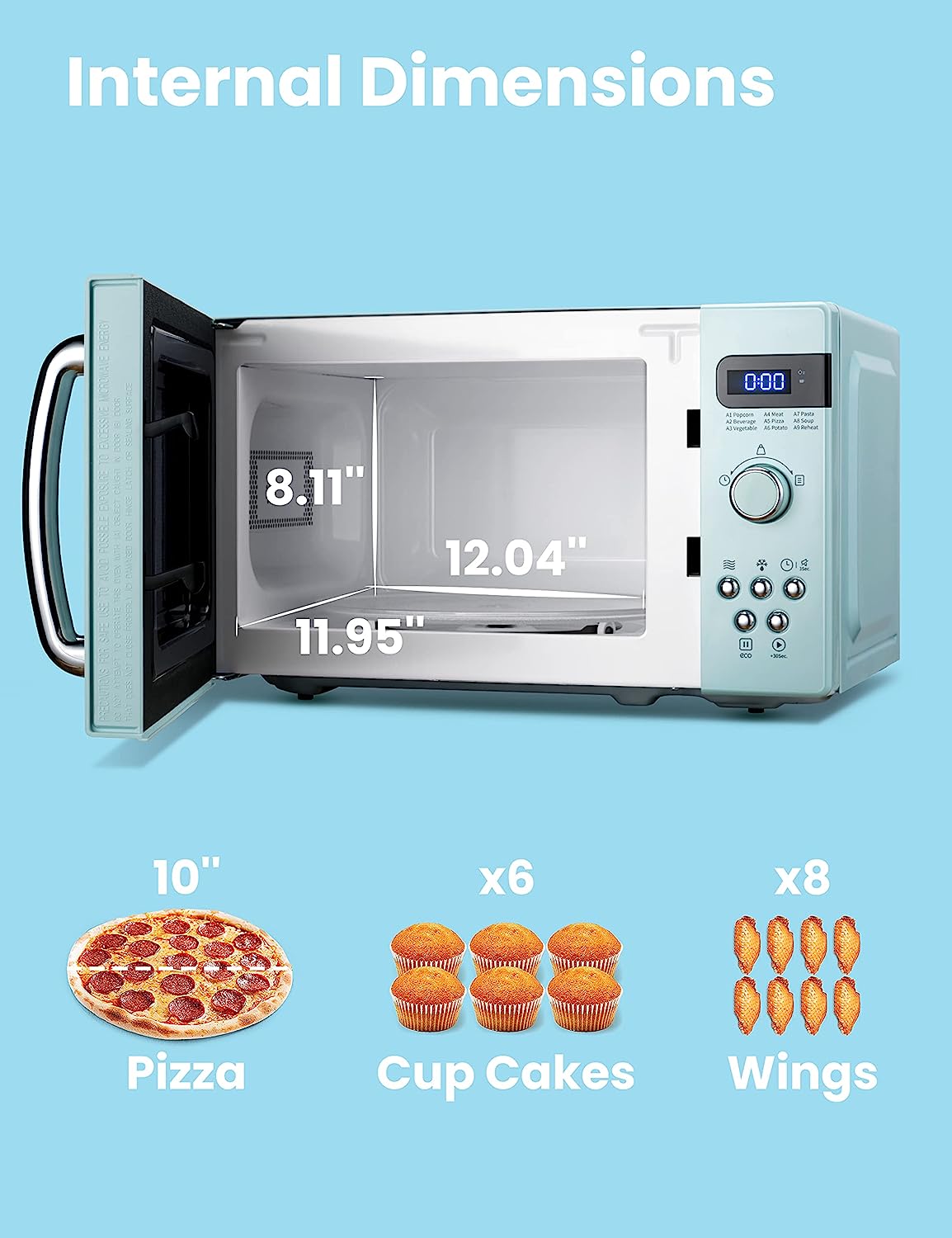 This COMFEE' 0.7 cubic feet 700 watts retro style microwave oven is inspired from those good old days, and refined by modern style and practical functions. It features 9 auto menus, easy defrosting function, microwave cooking with 10 power levels and an express cooking button. It is equipped with position memory turntable, energy saving eco mode, a mute button, clock and kitchen timer. The bright LED digital display, easy-to-read control panel and cool-touch rounded buttons further improve the user experience. And the compact size is ideal for apartment kitchens, vacation homes, offices and dorms.