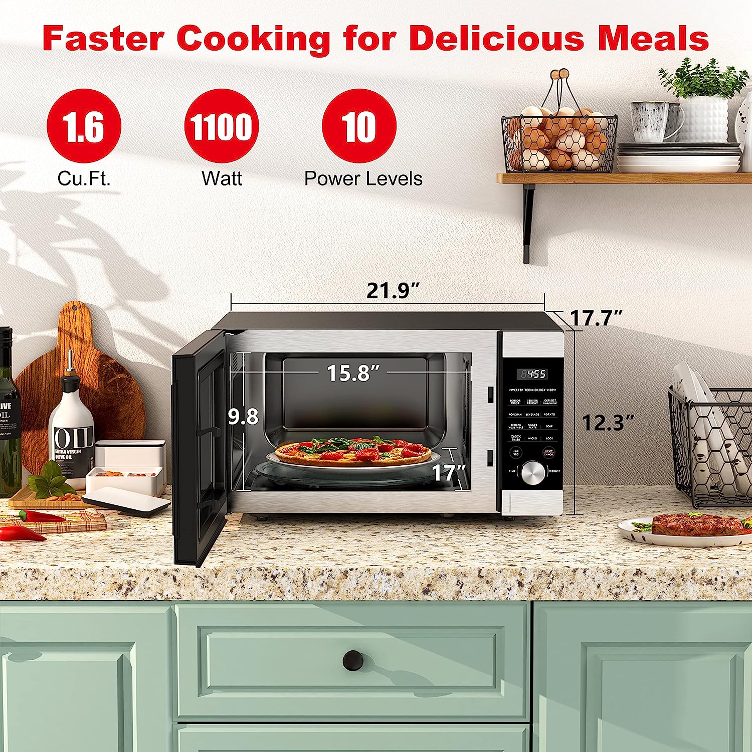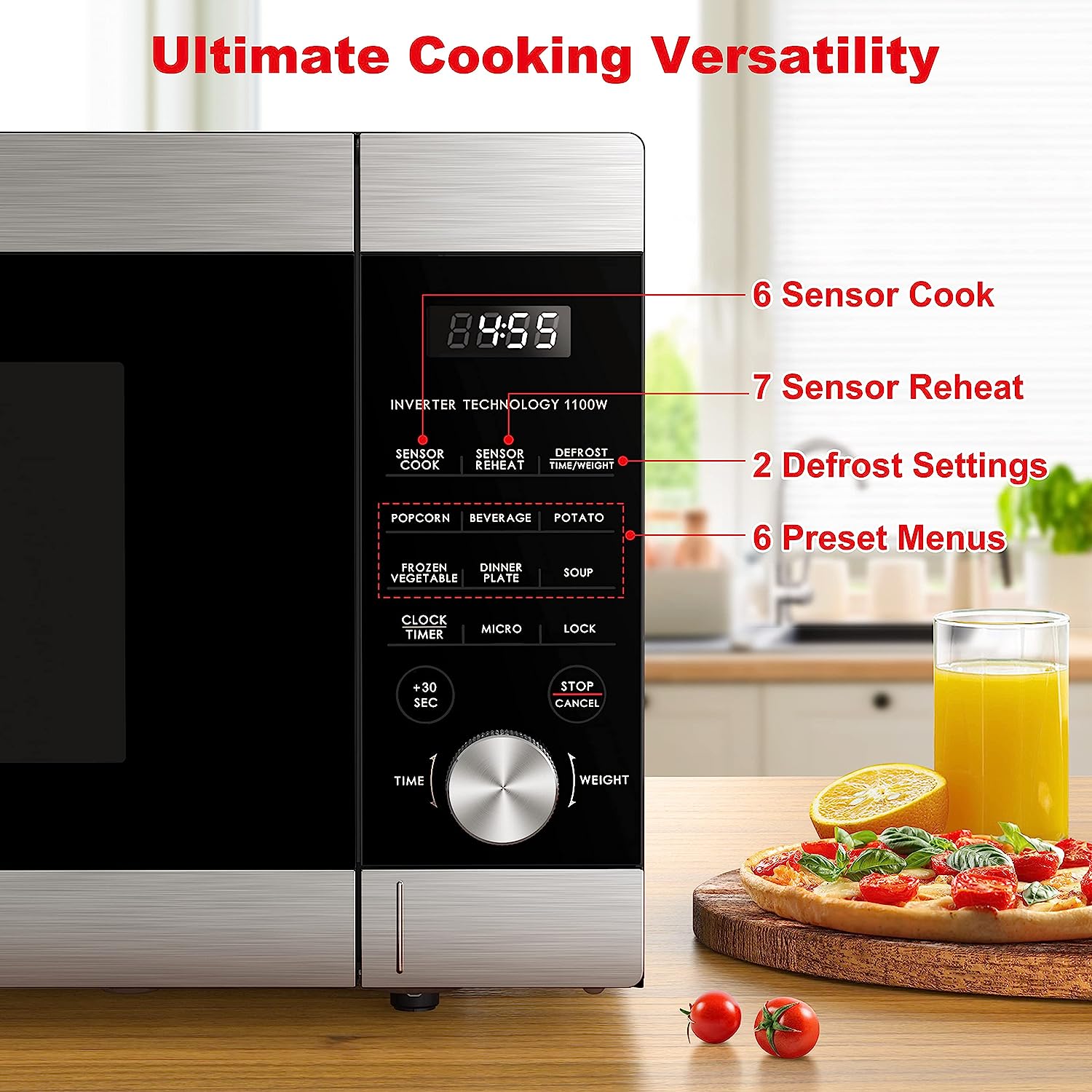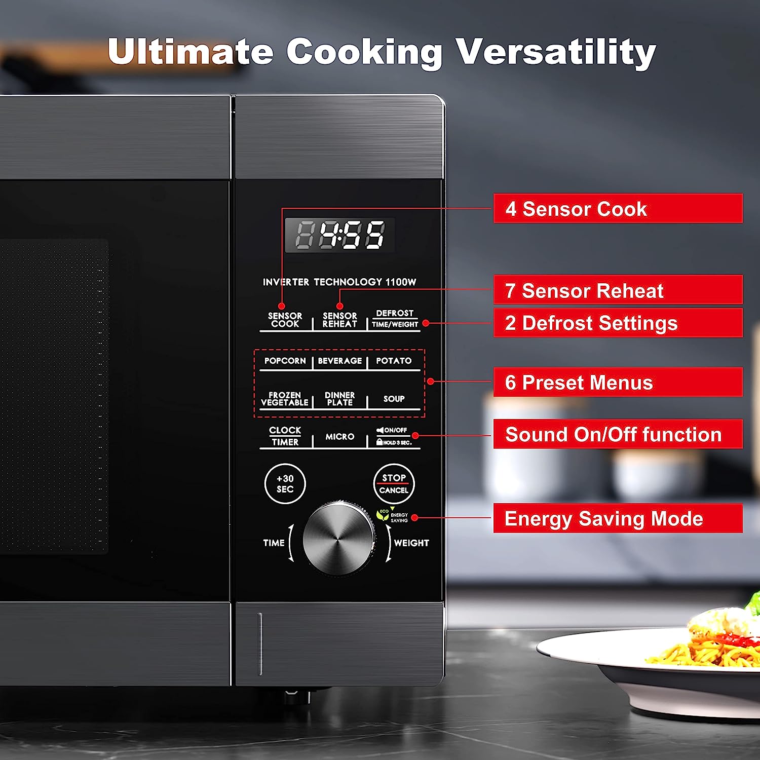 7 Sensor Reheat Programs: Chili, Frozen Entrée, Frozen Pizza, Mac and Cheese, Mashed Potatoes, Pasta, Rice