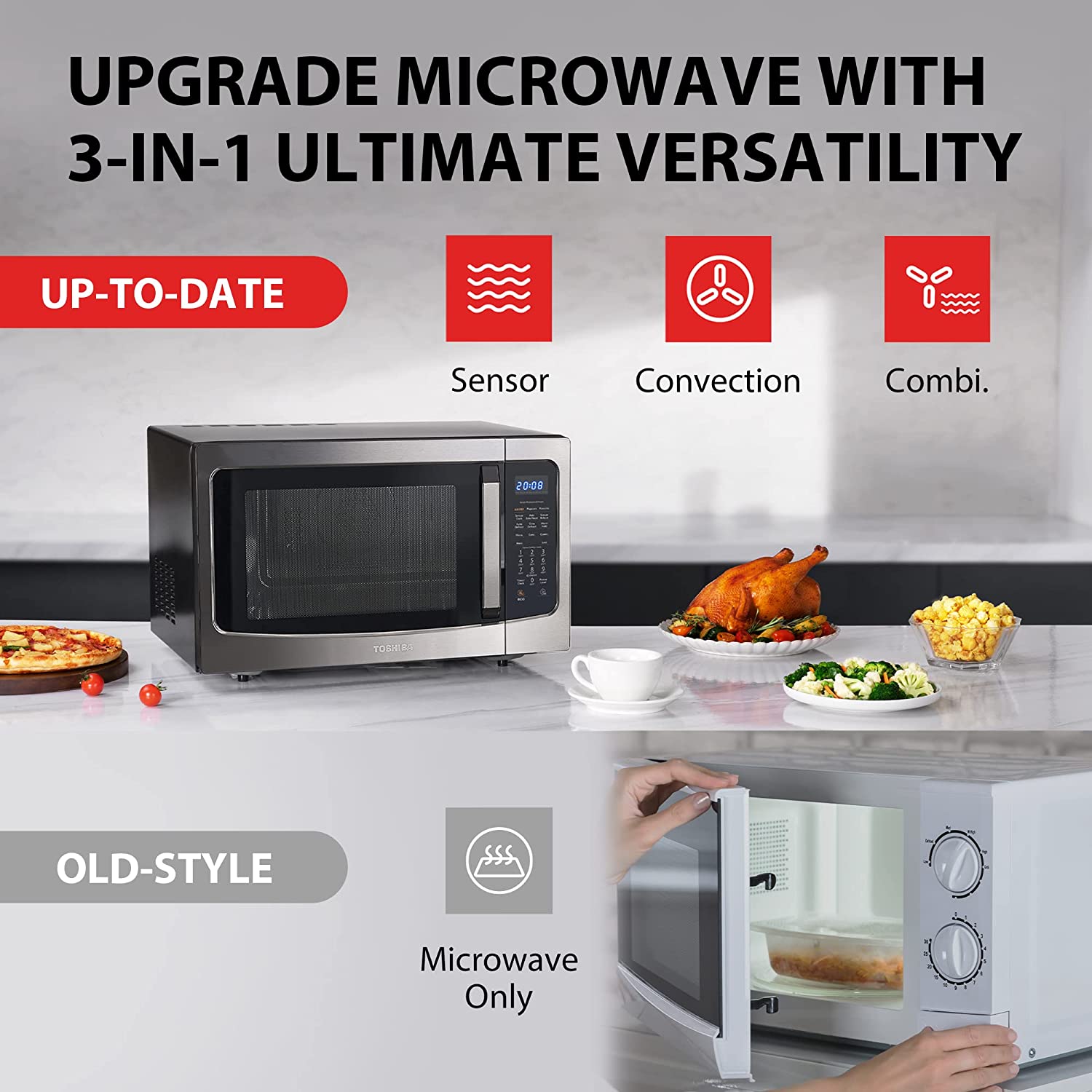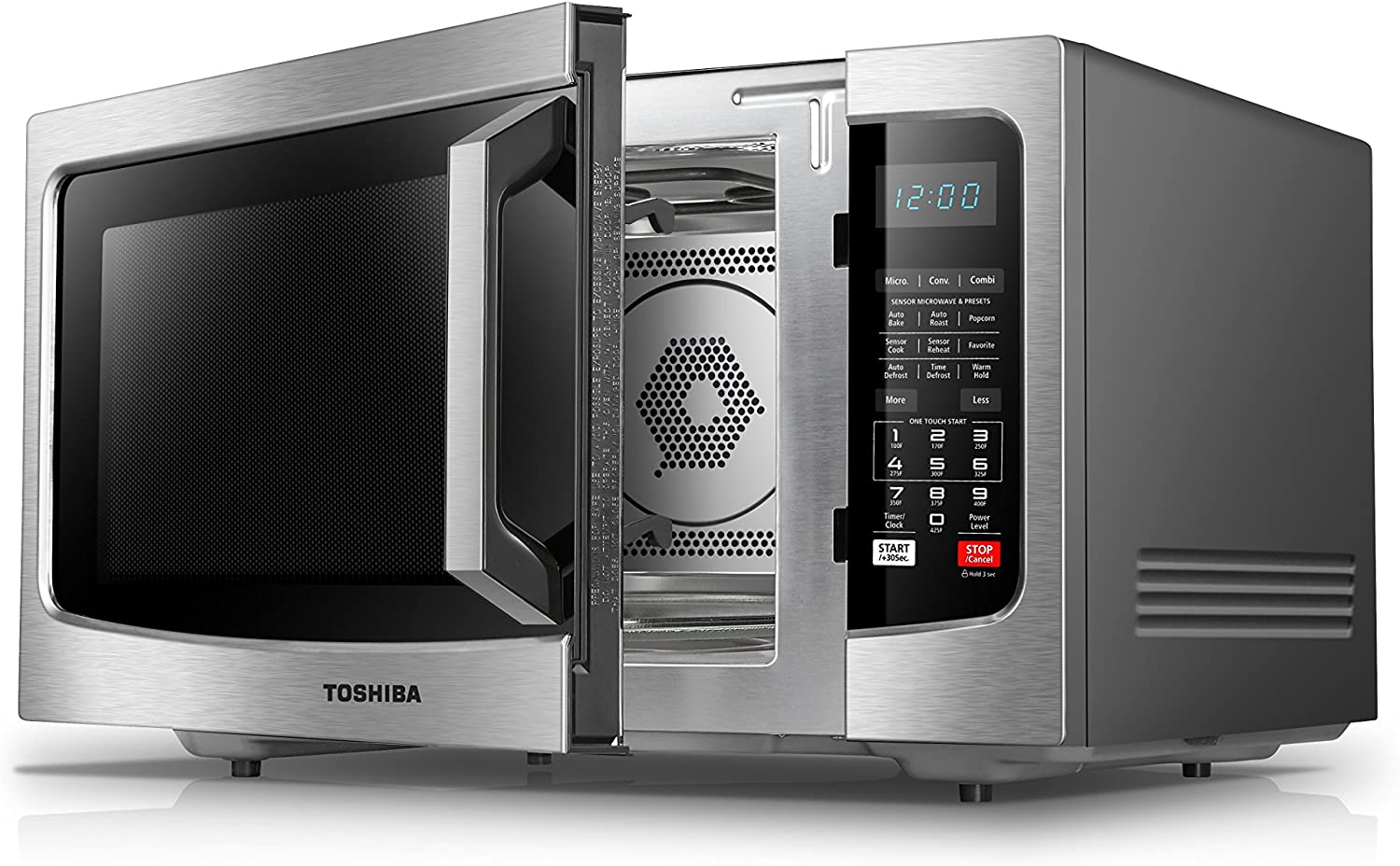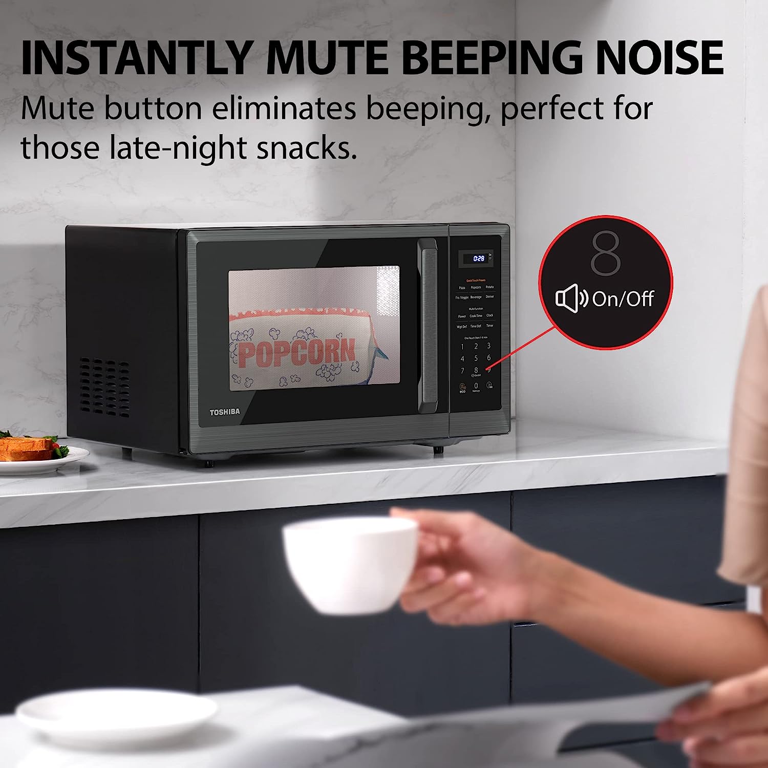 TOSHIBA ML-EM45P(BS) Countertop Microwave Oven with Smart Sensor and Position Memory Turntable, Memory Function, 1.6 Cu.ft with 13.6" Removable Turntable, Black Stainless Steel, 1200W