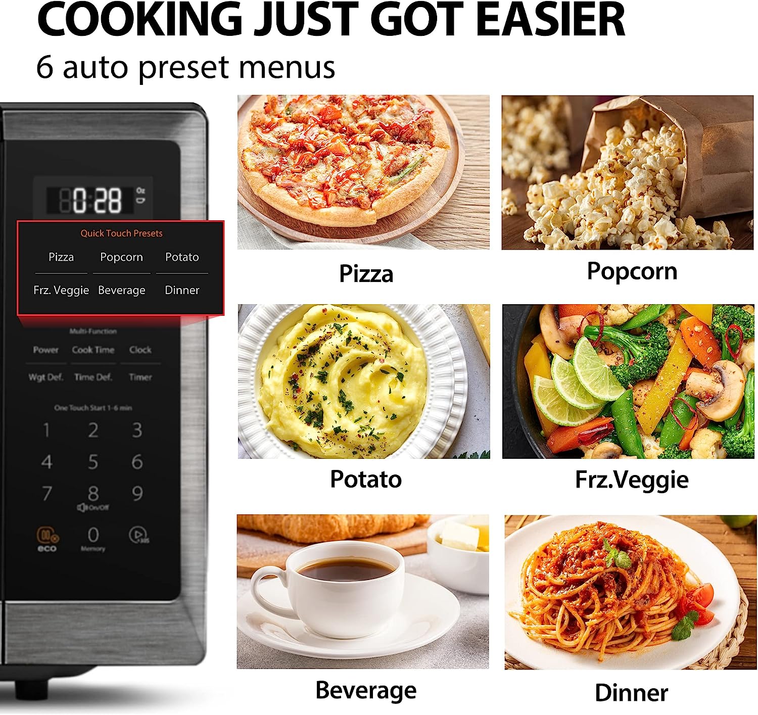 • 【Convenience Features】Auto defrost, fast cooking, memory function, multi-stage cooking, child safety lock, clock and kitchen timer