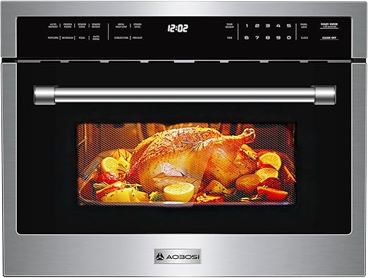 AAOBOSI 24 Inch Microwave Convection Oven, 1.6 Cu.Ft 10 Cooking Modes Microwave Drawer Oven, Over the Range Microwave Oven with Sensor Cook, 1000 Watt, Drop Down Door in Stainless Steel