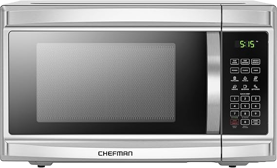 Chefman Countertop Microwave Oven, 1.3 Cu. Ft. Digital, Stainless Steel, 1000 Watts, with 6 Auto Menus, 10 Power Levels, Eco Mode, Memory, Mute Function, Child Safety Lock, Easy Clean Microwave Ovens